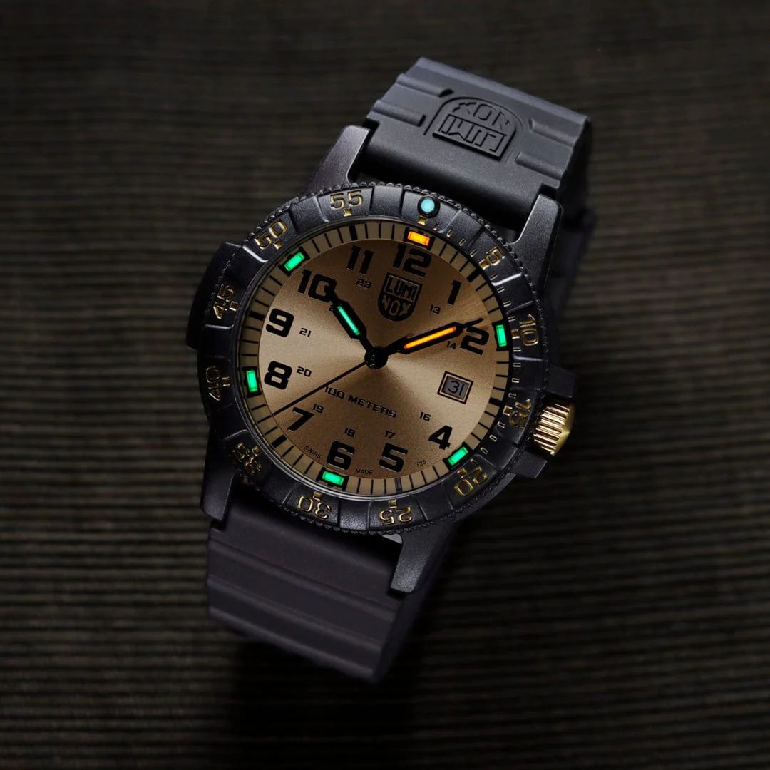 إحدى الحالات القليلة التي ابتكرت فيها لومينوكس ساعة للنساء، تتميز ساعة "لذر بلاك" بشكل أبيض لامع لهذه الساعة. على الرغم من أنها أنثوية في اللوحة، إلا أنها تحتفظ بالطبيعة القاسية للومينوكس. يُعد المينا المضيء لهذه الساعة أحد أكثر ميزاتها لفتًا للنظر. يمكن قراءة القرص بشكل كبير خلال النهار، كما تضمن التقنية المستخدمة أنه يمكنك بسهولة معرفة الوقت عندما يكون الظلام.اللون الأخضر مع النقاط الحمراء من الساعة 12 إلى الساعة 3 بالإضافة إلى عقرب الثواني الأحمر يشكلان مزيجًا مذهلاً. ومع ذلك، يمكن أن تكون إمكانية قراءة القرص أفضل قليلاً في الظروف المحايدة. يوفر الجزء الخلفي من مركب الكربون الأسود مزيدًا من الموثوقية بالإضافة إلى طول العمر. وبصرف النظر عن ذلك، فإن الإطار الدوار أحادي الاتجاه المركب من الكربون يعمل بشكل مثالي كمؤقت. كما أنه يسمح لك بإصلاح الوقت دون أن يسقط المقبض أو ينكسر في أي وقت قريب.