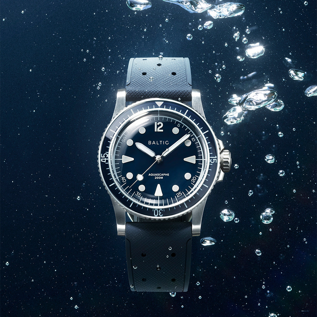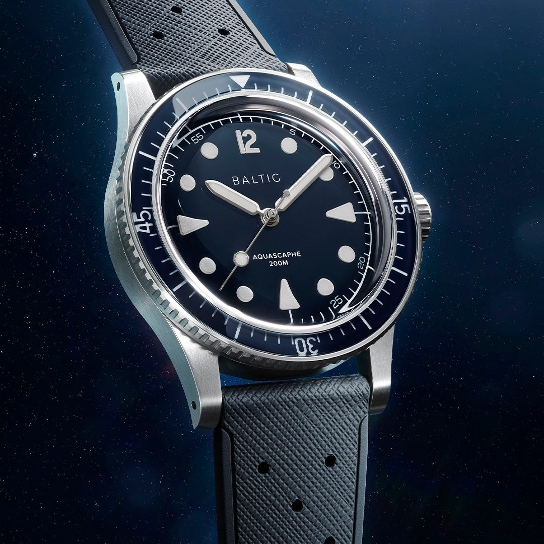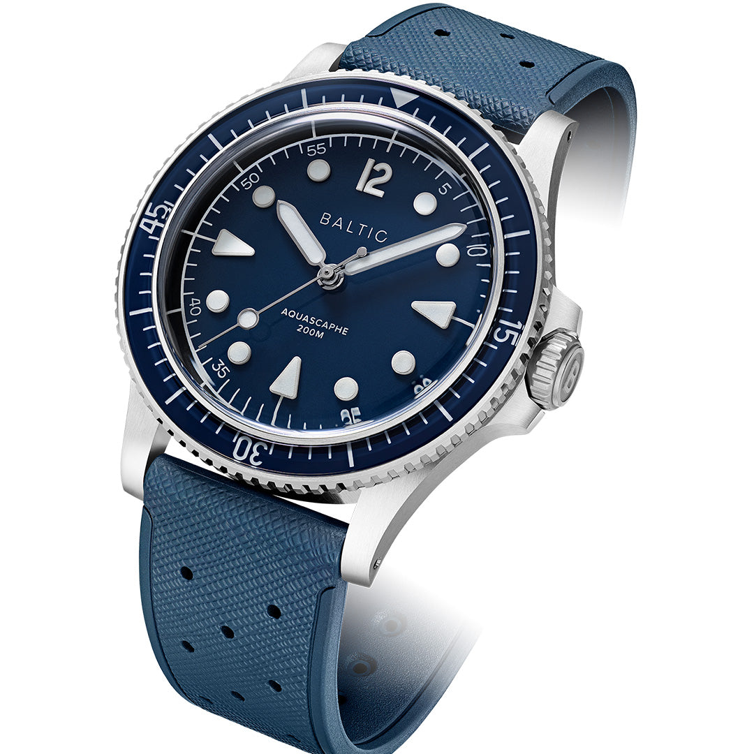 The Aquascaphe MK2 is our interpretation of a neo-retro diver. All was done to improve legibility, both in broad daylight and in the dark.