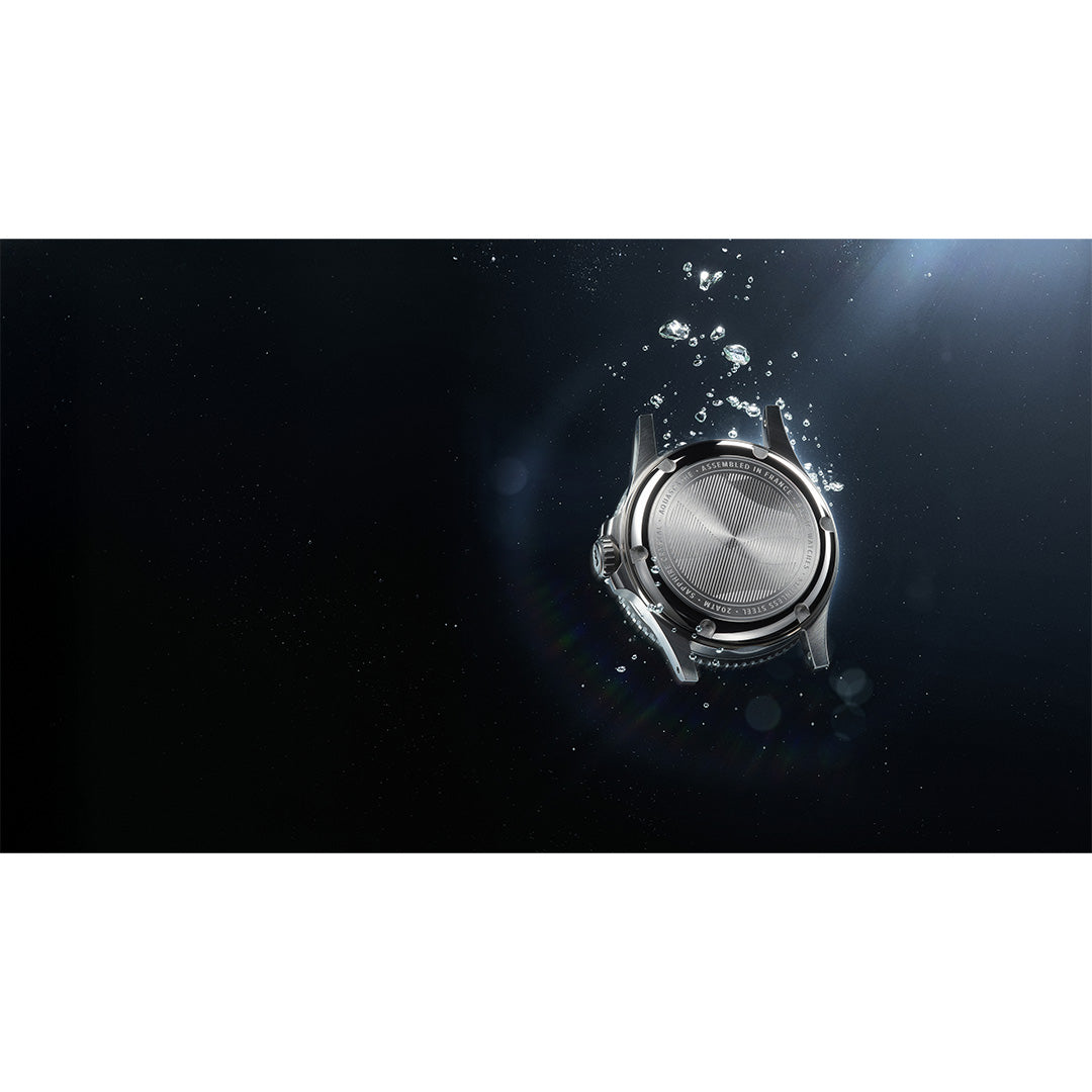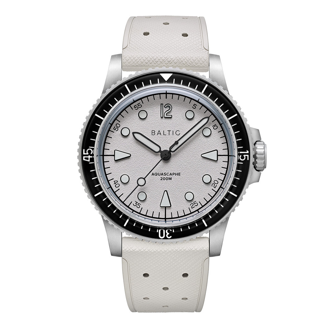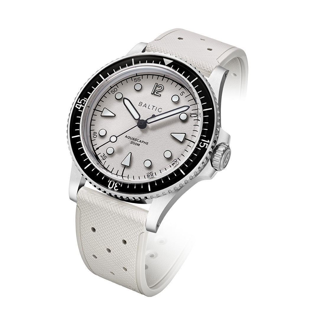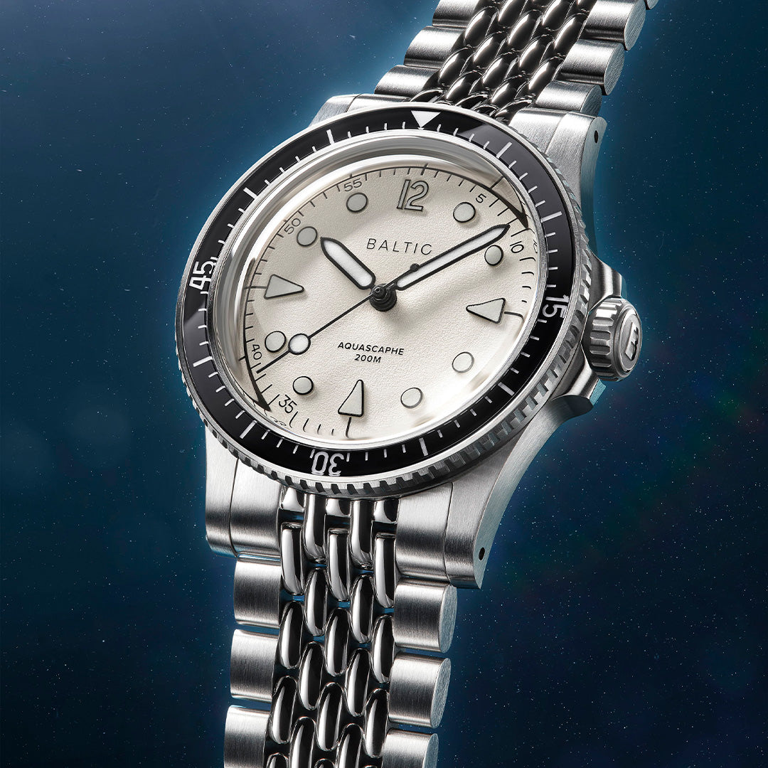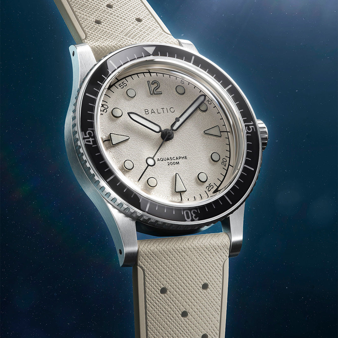 The Aquascaphe MK2 is our interpretation of a neo-retro diver. All was done to improve legibility, both in broad daylight and in the dark.