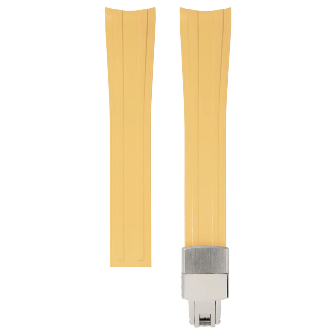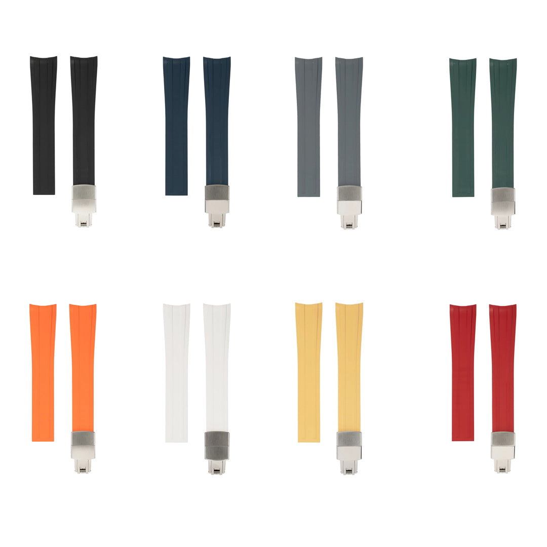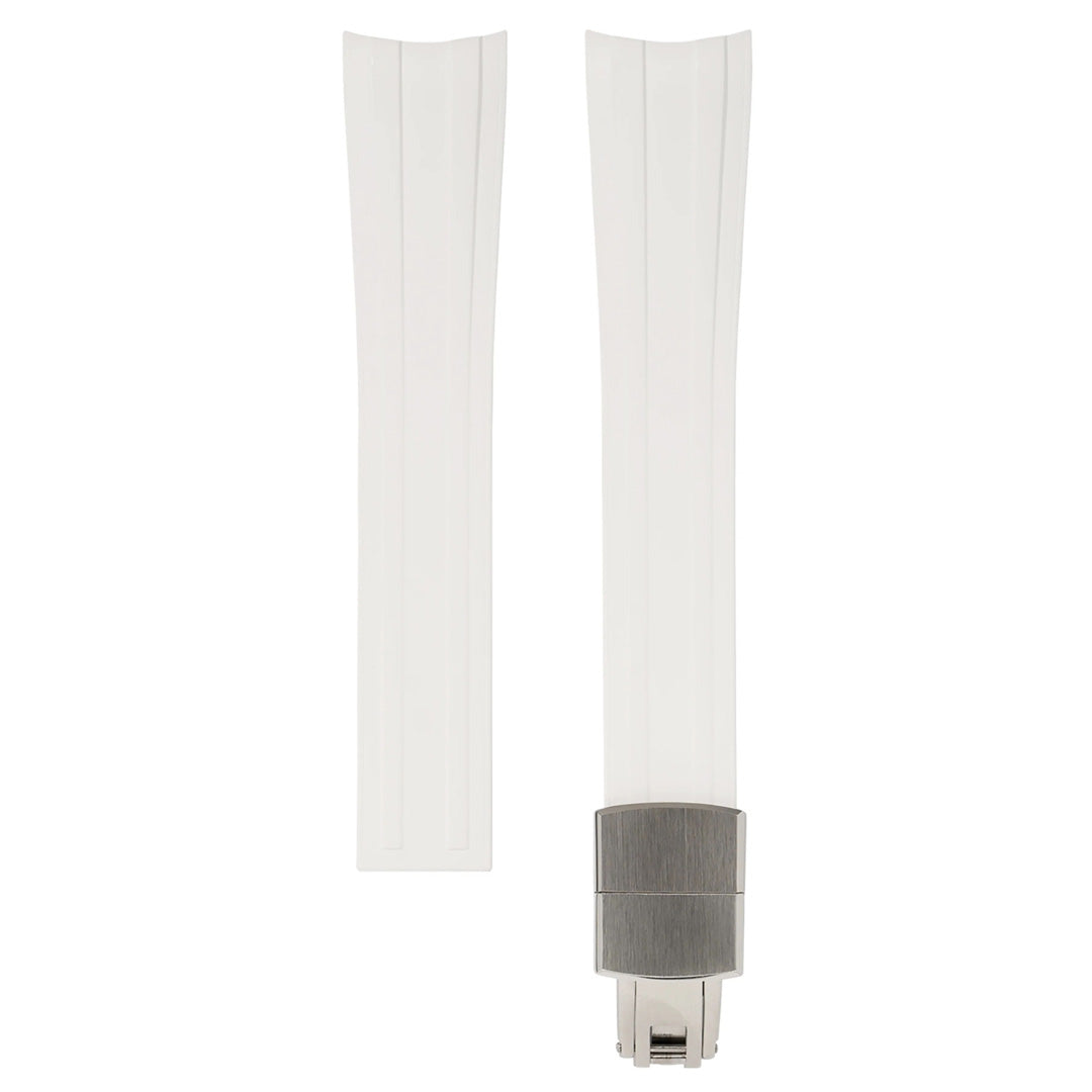 Customisable to fit your wrist perfectly and secured with a sleek leaf-spring deployant clasp, it is also available in a range of colours to suit your personal style. This strap is not only comfortable and durable, it is also truly waterproof and easy to maintain.