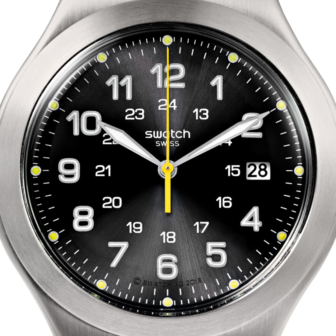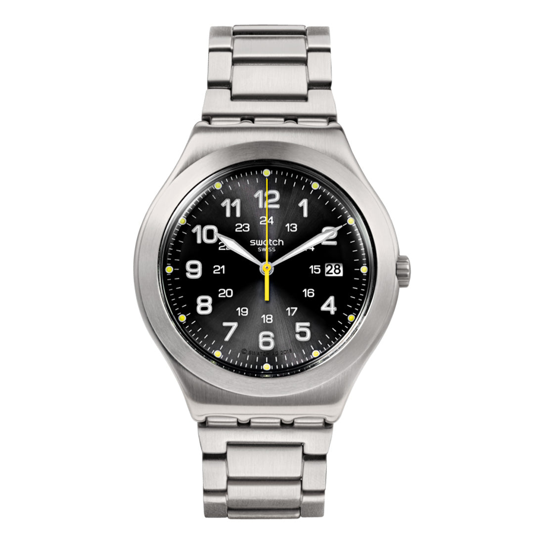 Like his older brother, HAPPY JOE LIME (YWS439GC) features a stainless steel look with a sun-brushed blue dial. But this model stands out with a zesty yellow seconds hand and matching print.