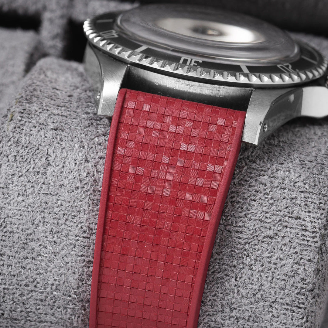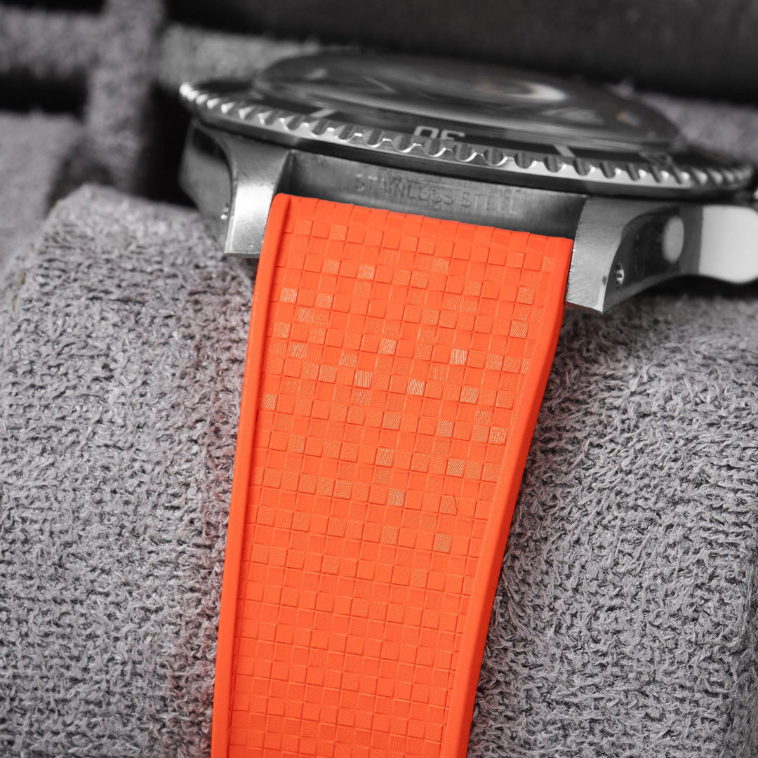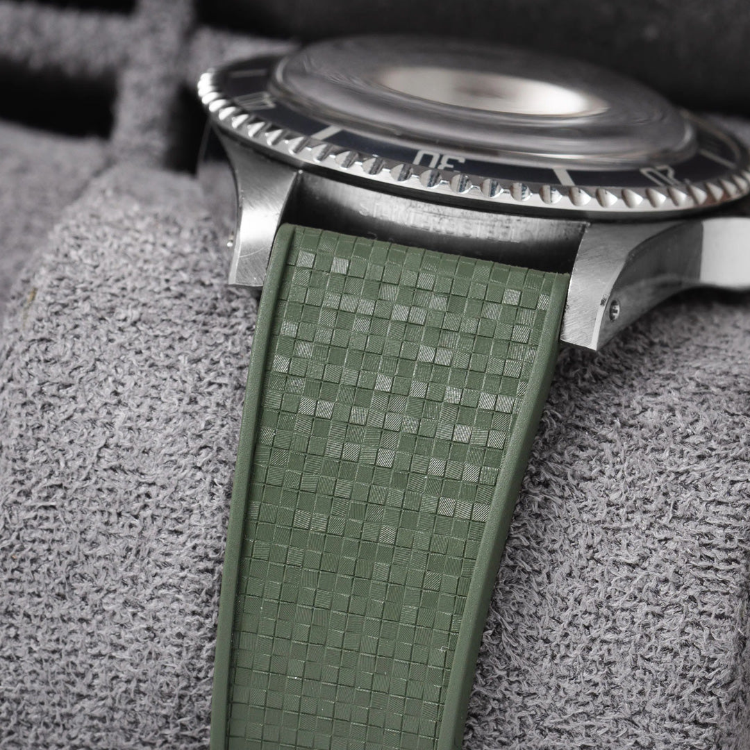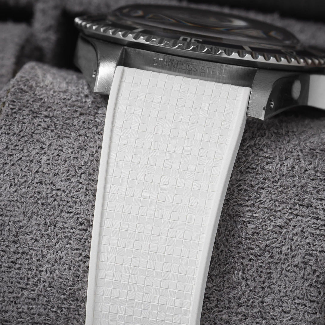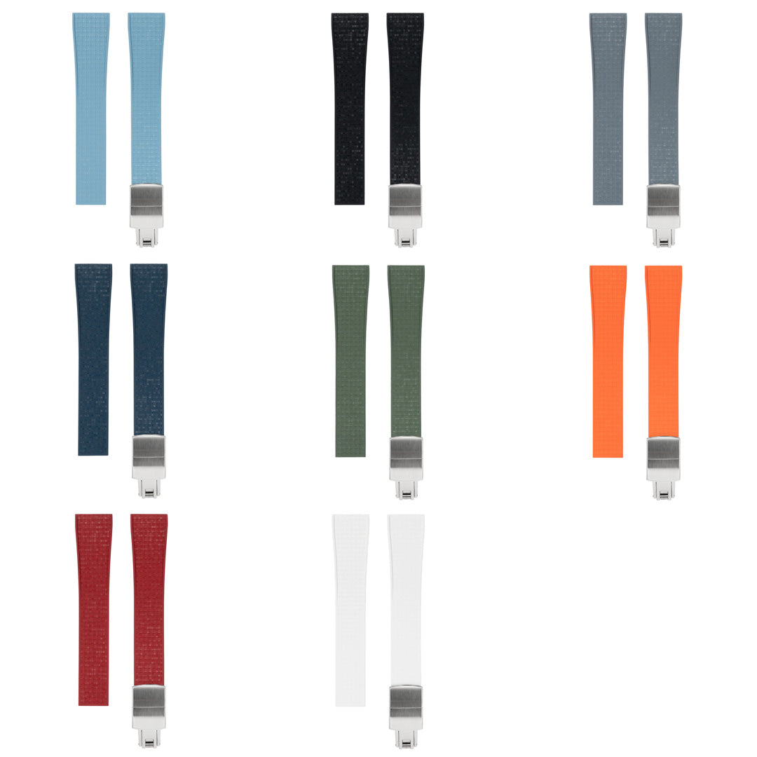 These straps are made with FKM fluoroelastomer, which is widely considered to be the second to none when used as a material for watch straps. It has high chemical stability, and is resistant to aging and weather. Most importantly, it doesn’t attract dust!