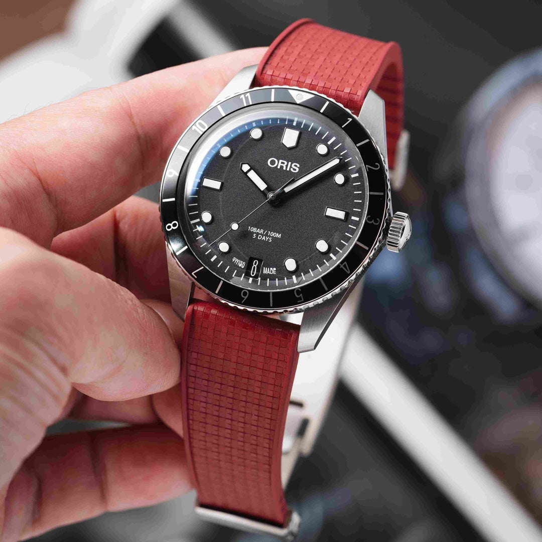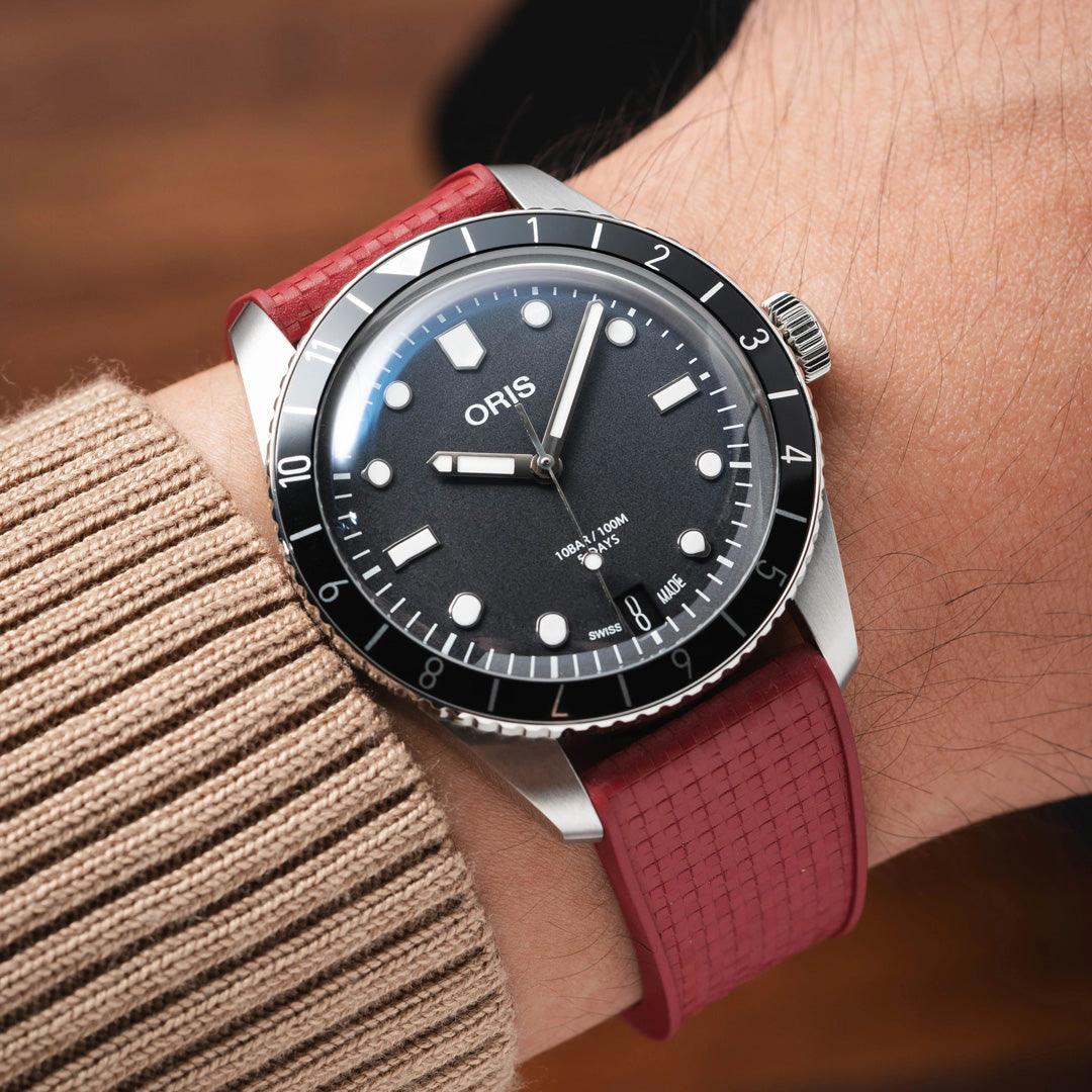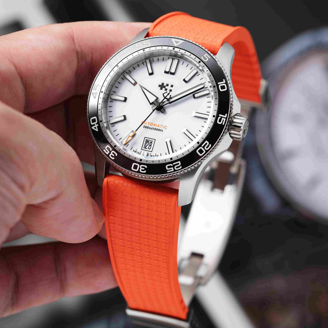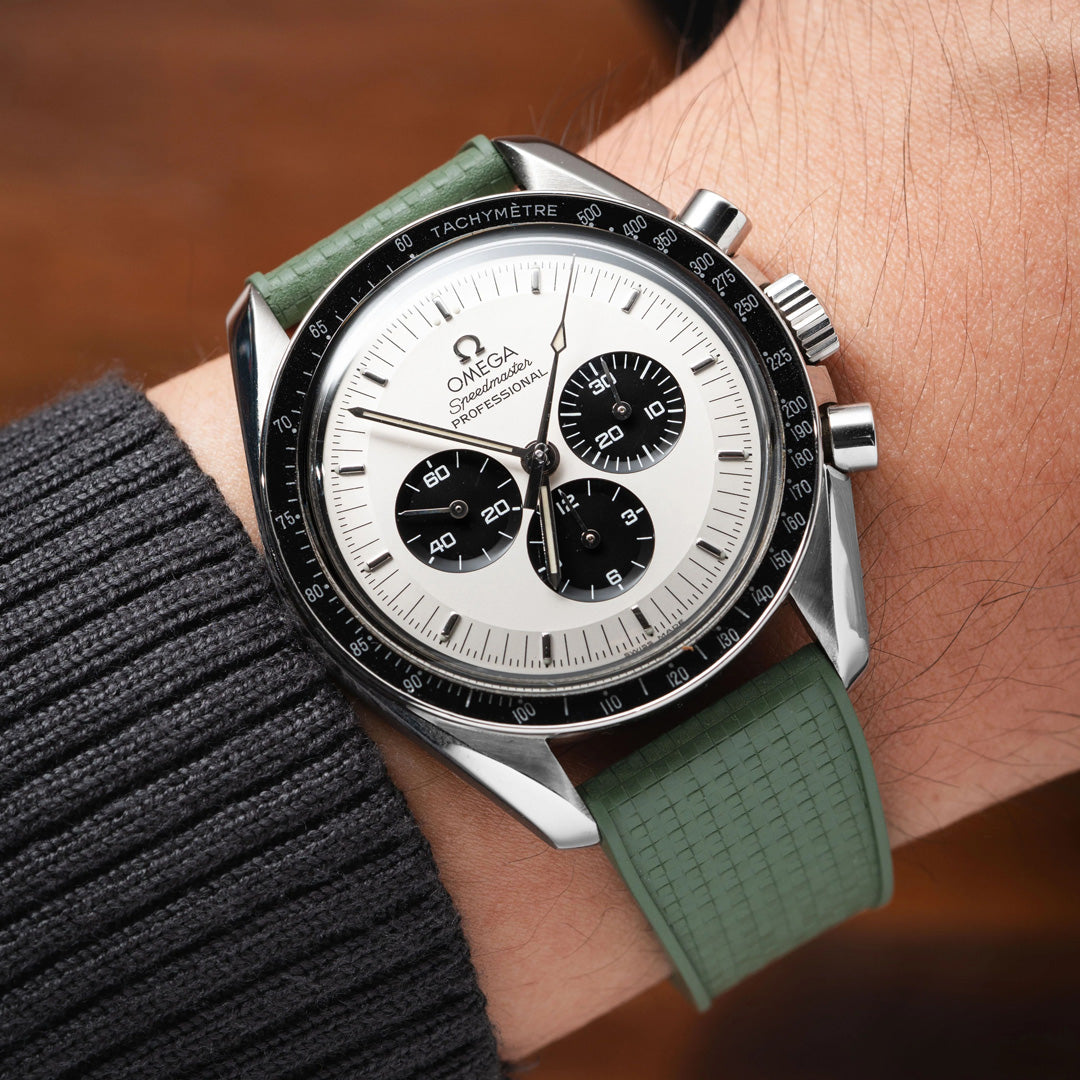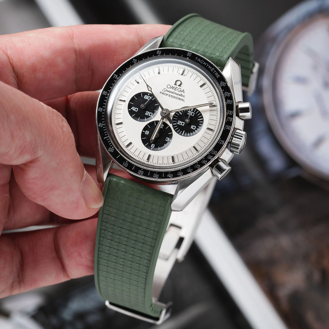 These straps are made with FKM fluoroelastomer, which is widely considered to be the second to none when used as a material for watch straps. It has high chemical stability, and is resistant to aging and weather. Most importantly, it doesn’t attract dust!