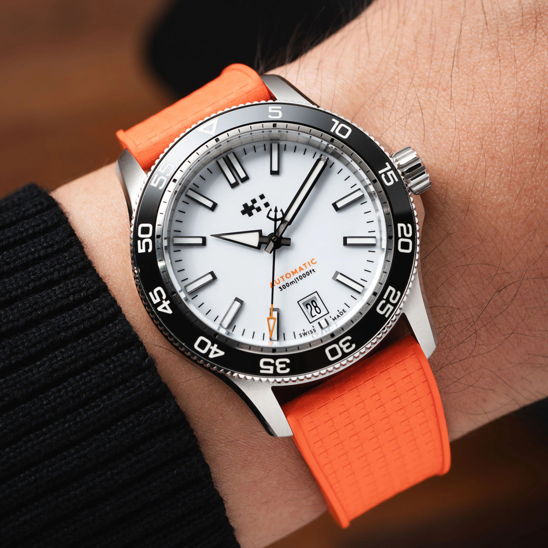 Our CTS Rubber Strap is customizable to fit your wrist perfectly regardless of wrist size and is secured with a leaf-spring deployant clasp featuring a mechanism that makes putting on and taking off your watch convenient, secure and fun. Available in a range of colours, it allows you to express your style effortlessly. Not only is this strap comfortable and durable, but it is also truly waterproof and easy to maintain, making it a versatile choice for any lifestyle.