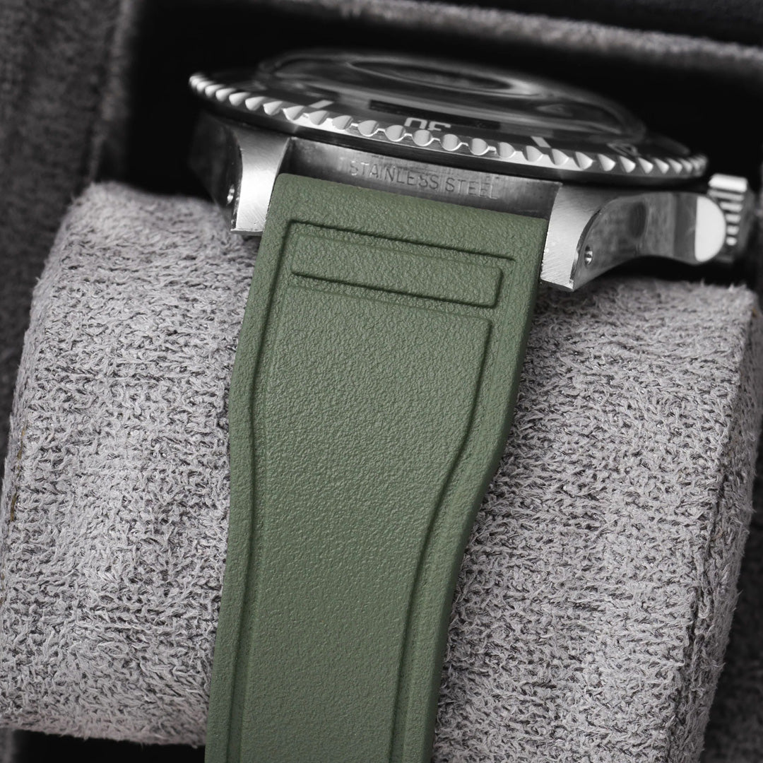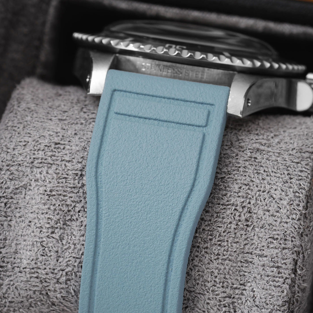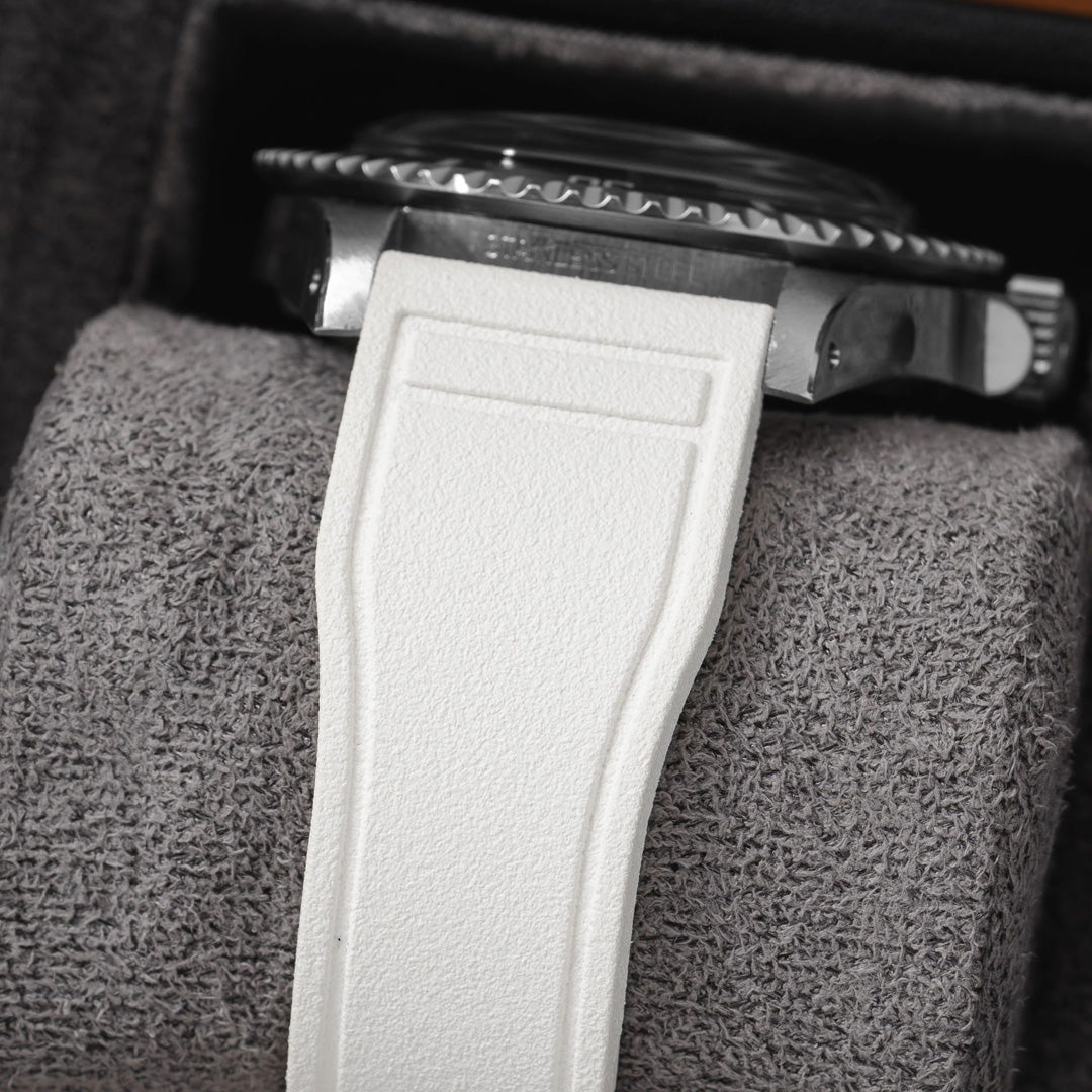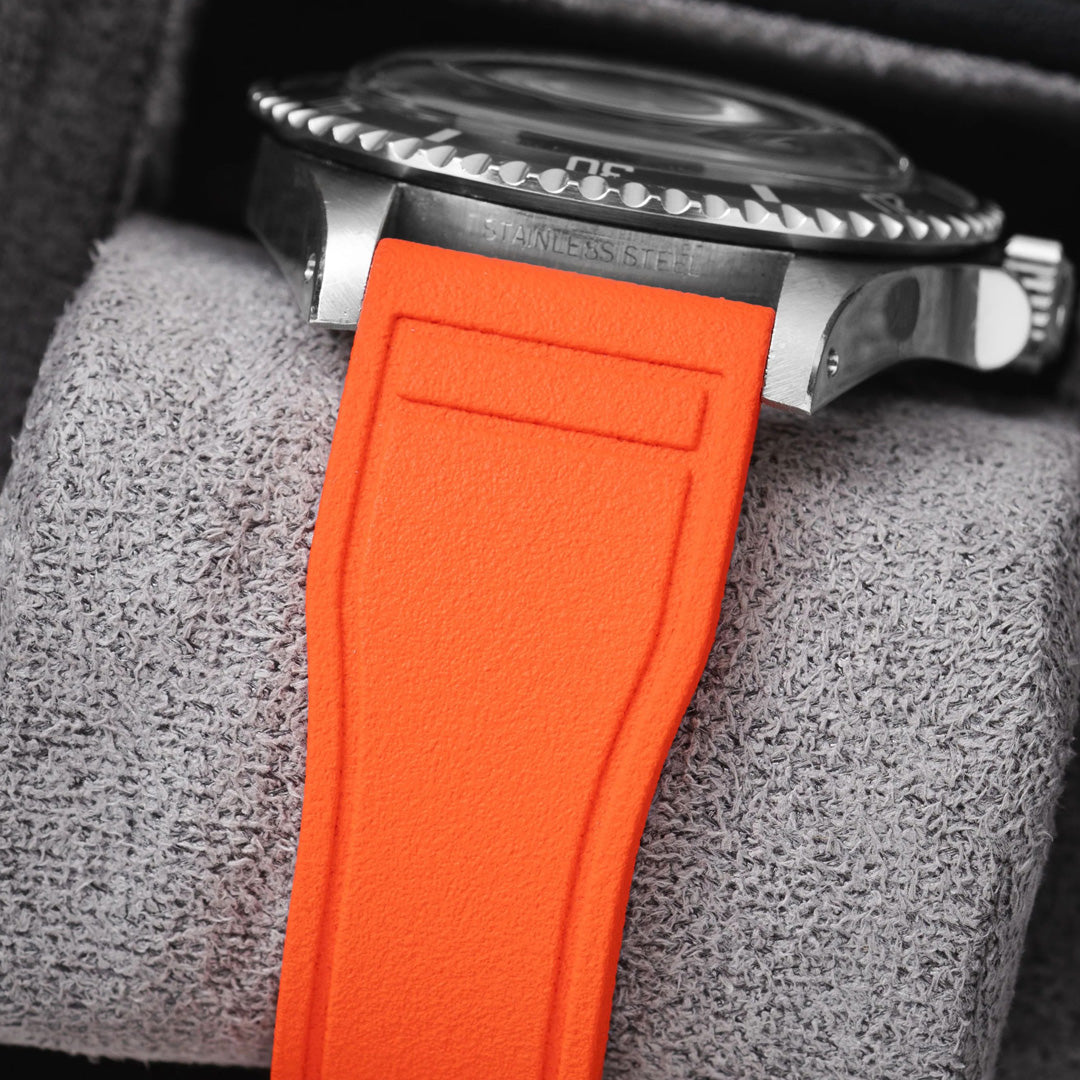 These straps are made with FKM fluoroelastomer, which is widely considered to be the second to none when used as a material for watch straps. It has high chemical stability, and is resistant to aging and weather. Most importantly, it doesn’t attract dust!