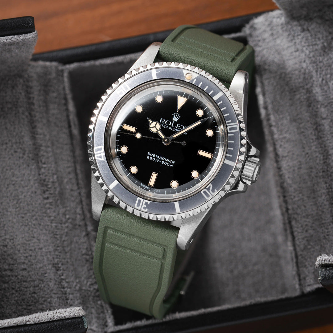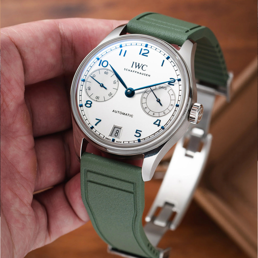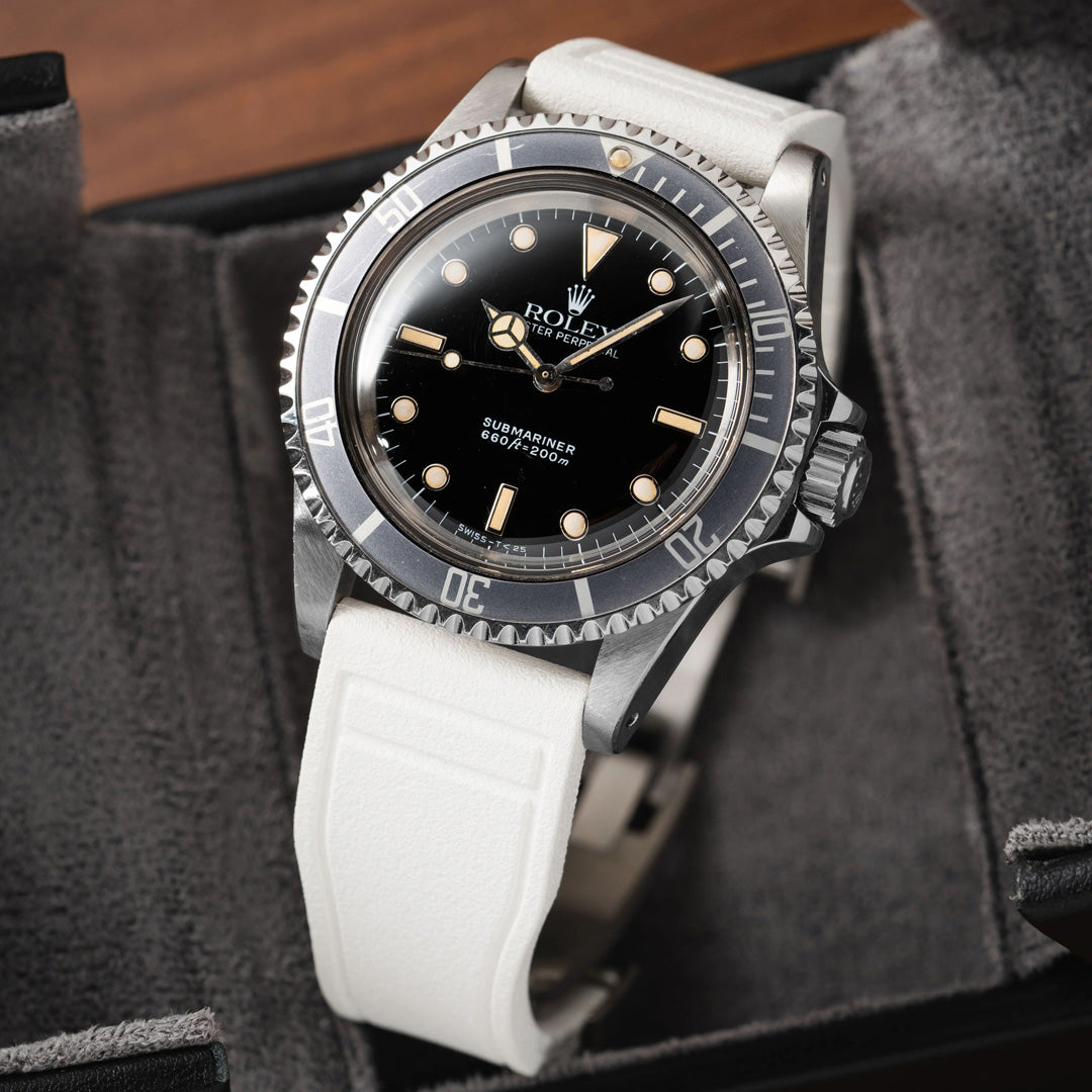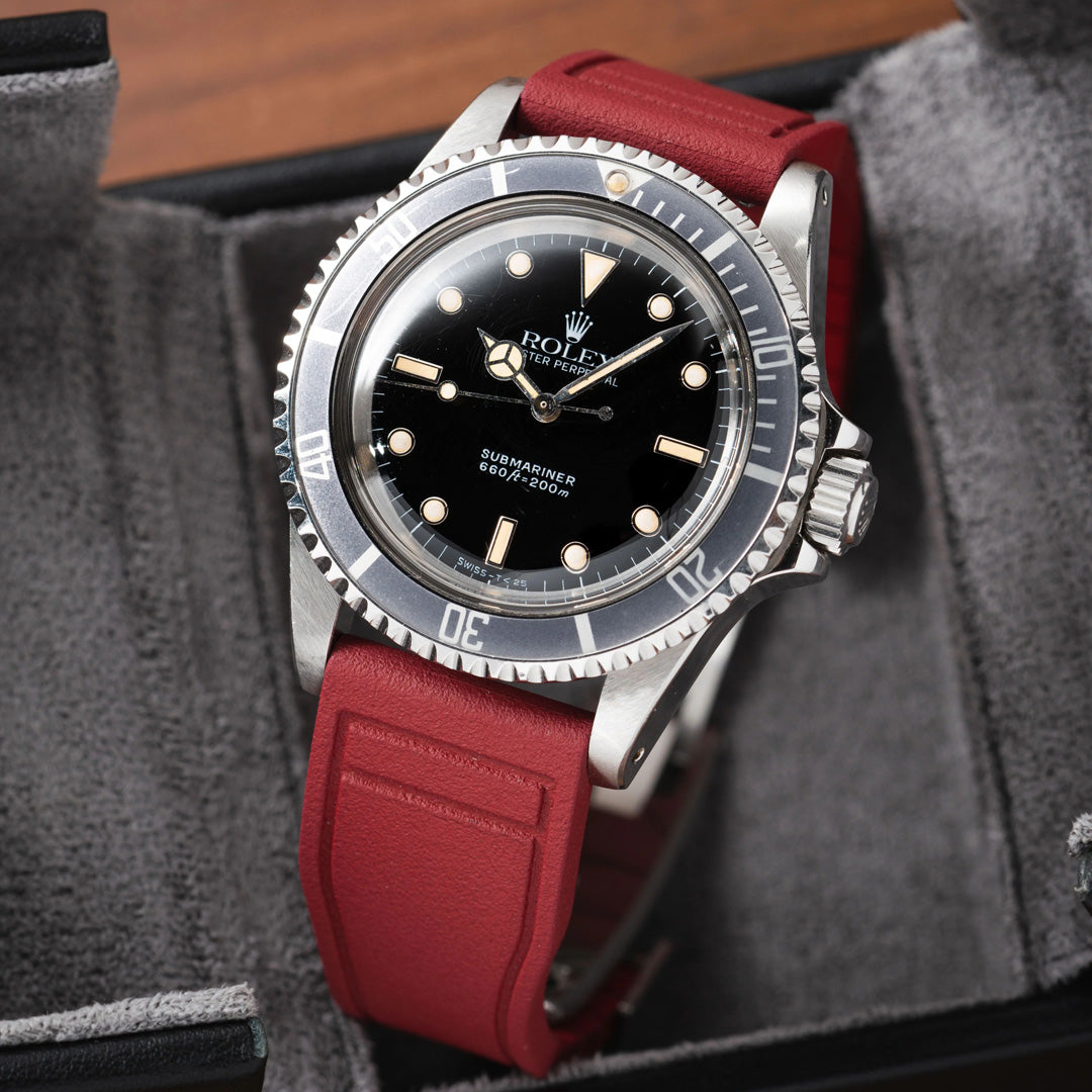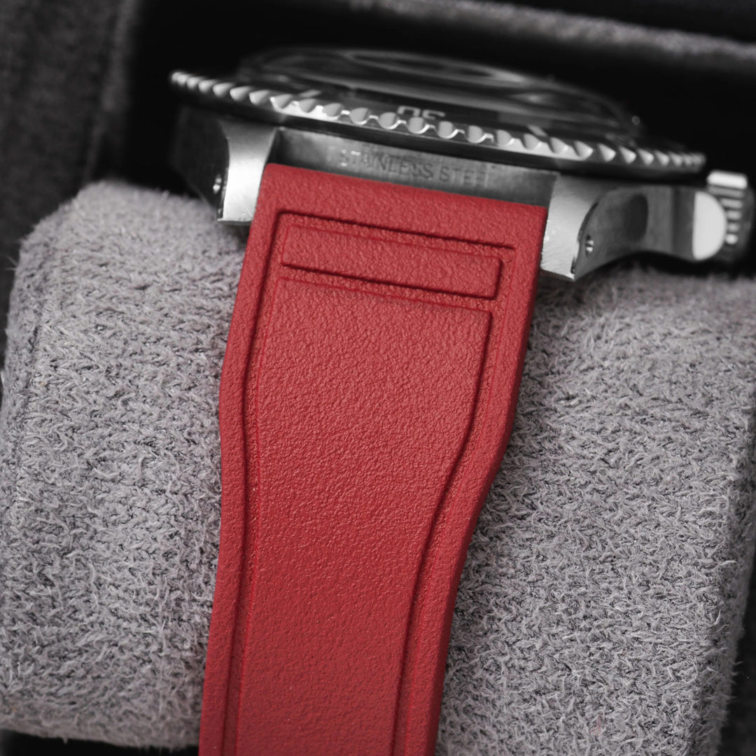 These straps are made with FKM fluoroelastomer, which is widely considered to be the second to none when used as a material for watch straps. It has high chemical stability, and is resistant to aging and weather. Most importantly, it doesn’t attract dust!