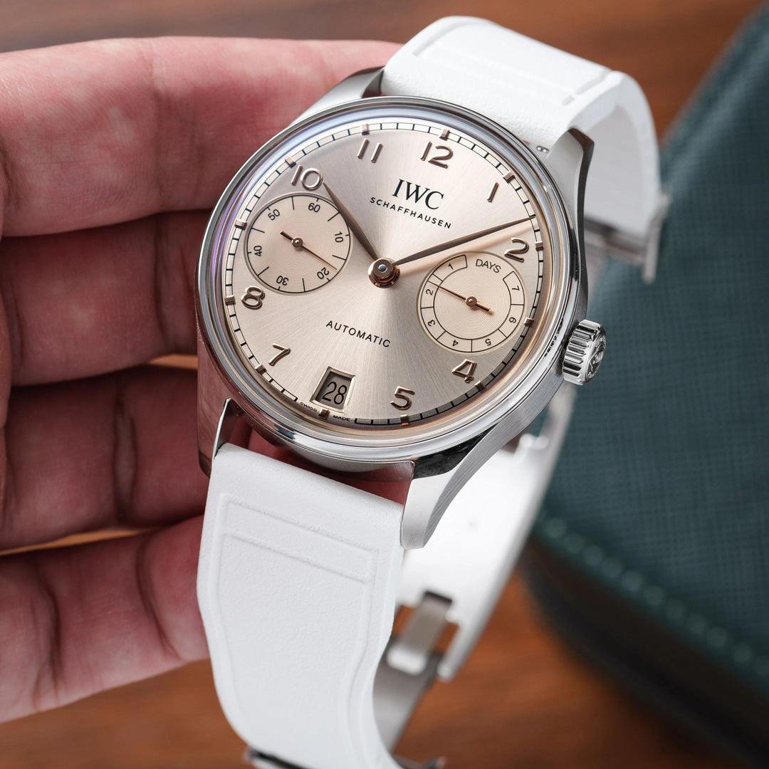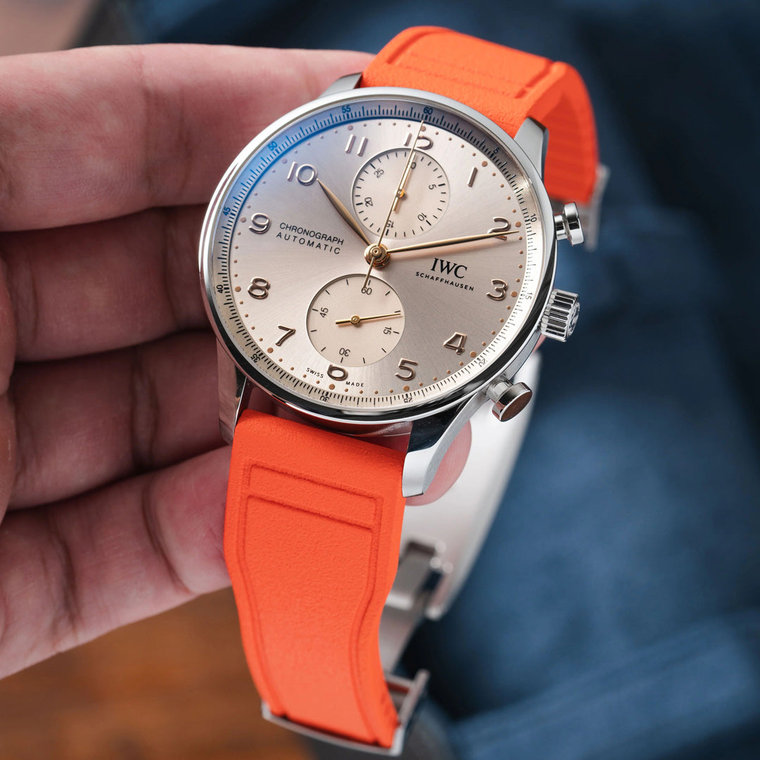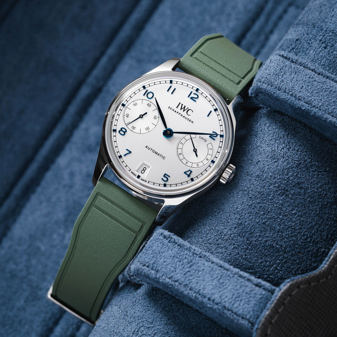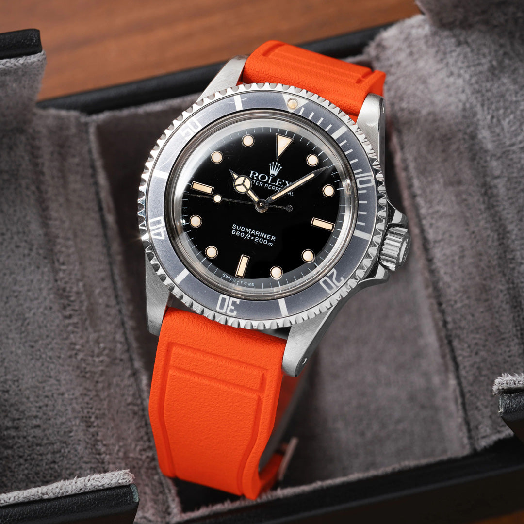 These straps are made with FKM fluoroelastomer, which is widely considered to be the second to none when used as a material for watch straps. It has high chemical stability, and is resistant to aging and weather. Most importantly, it doesn’t attract dust!