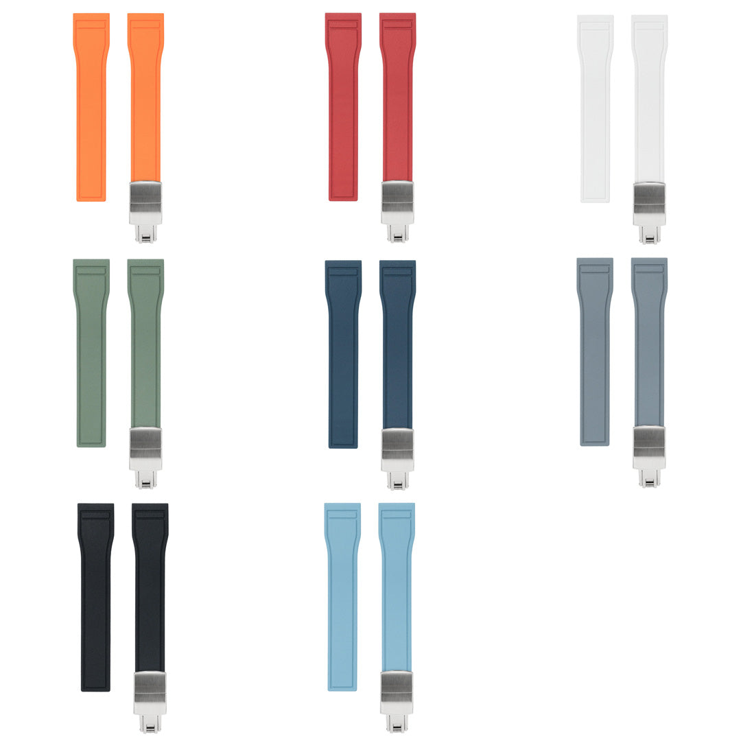 Every rubber CTS strap comes with our custom-made Deployant Clasp featuring a refreshing leaf spring mechanism (not magnetic!). The curvature of the clasp provides a flushed and seamless look. If this is your first time trying it out, you'll be in for a surprise—who knew that wearing a strap could be so much fun!