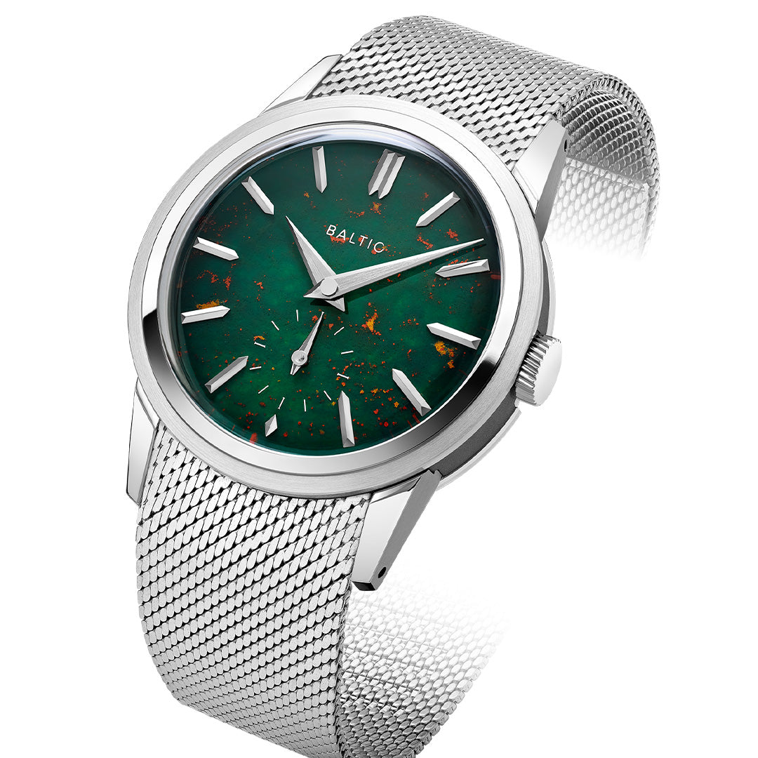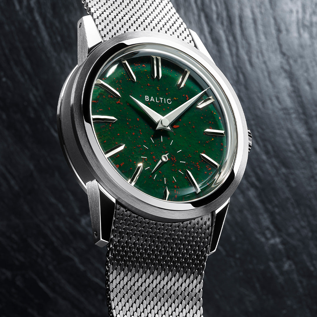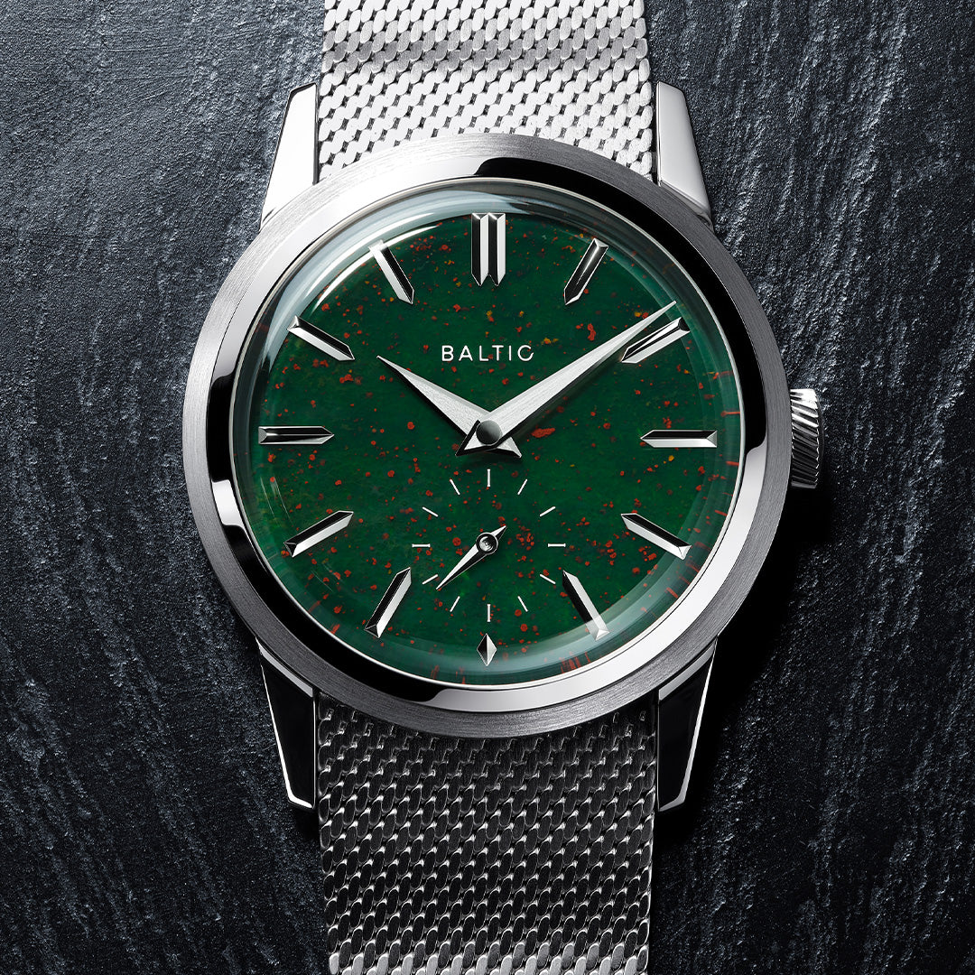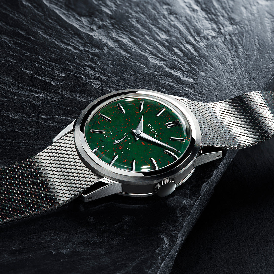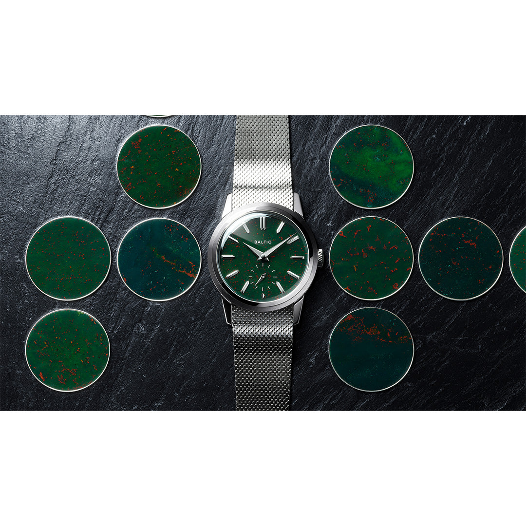 Dial: Bloodstone stone dial, Brushed dauphine hands with polished chamfers. Polished and applied indexes