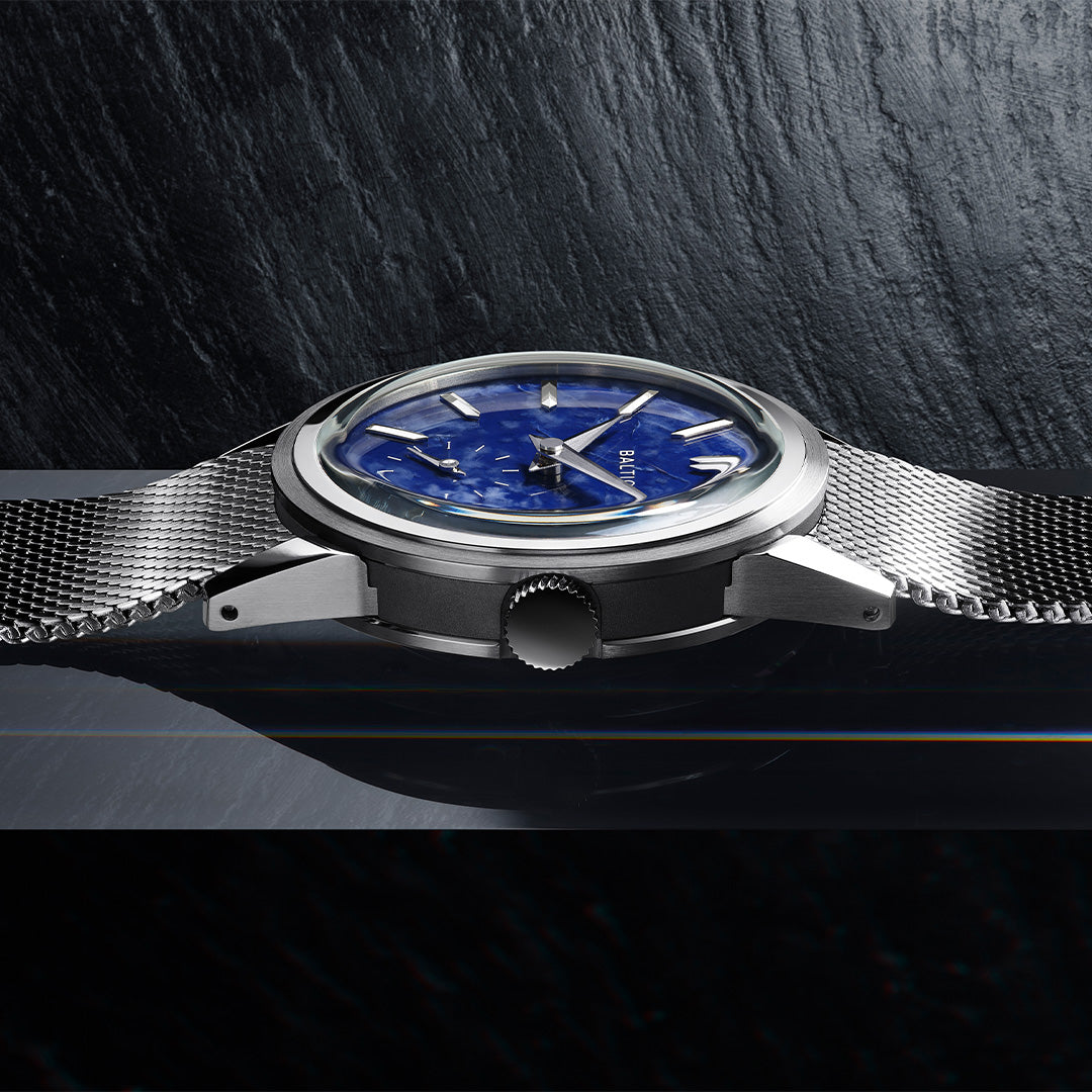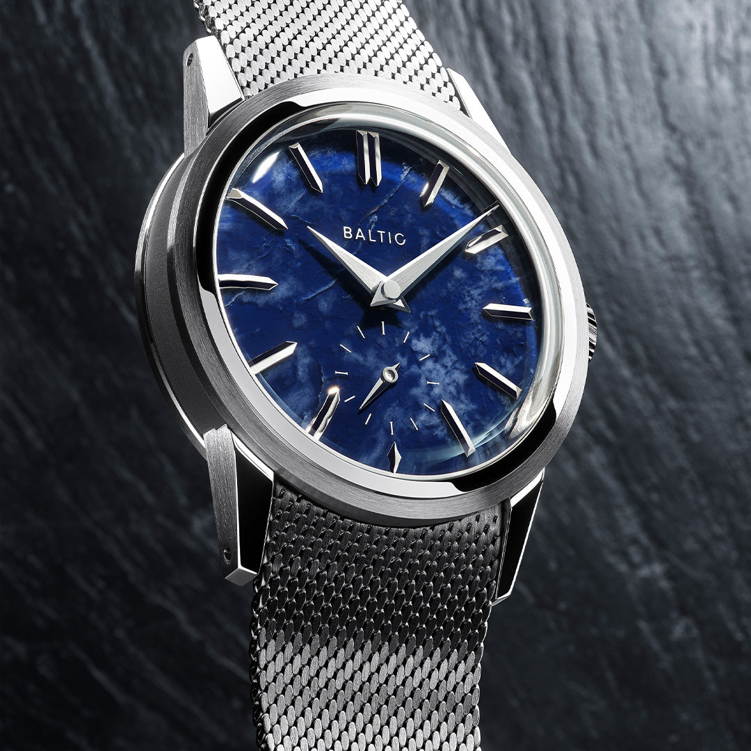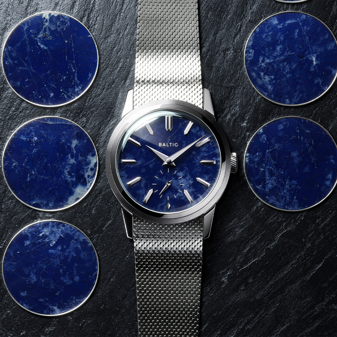 Dial: Dumortierite stone dial, Brushed dauphine hands with polished chamfers. Polished and applied indexes