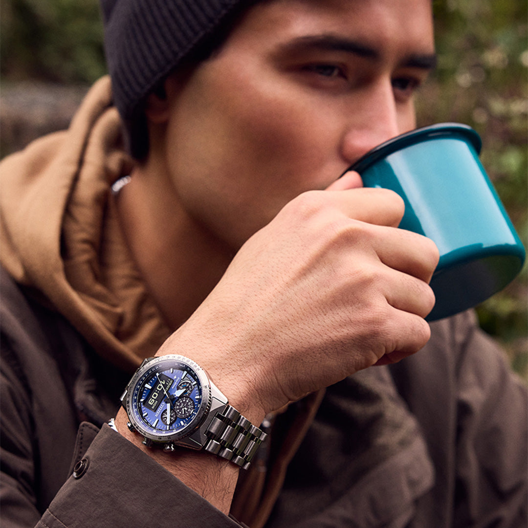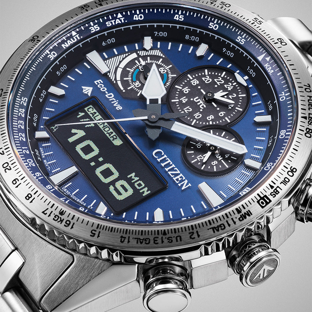 Functions: 24hrs, Date, Day & Month Display, MIP (Memory In Pixel) LCD display, Light Level Indicator (7 days record), Eco-Drive (recharged by any light source, no need for regular battery replacement), Overcharge Prevention Function, Insufficient Charge Warning Function, Alarm, Chronograph, Split & Lap Time Counter, Timer, Perpetual Calendar, Dual Time, 43 Areas World Time, Summer Time (ON/OFF), UTC (Universal Time Coordinated), Power Reserve Level Indicator, LED Lights