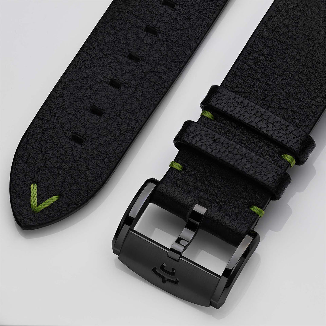 The design of this model is inspired by the Su-57, a cutting-edge 5th-generation supermaneuverable fighter jet. The dark color palette of the watch is not a mere aesthetic choice: it mirrors the advanced technologies and stealth features that are the hallmark of this aircraft. Much like the aircraft’s fuselage, materials, and special coating render the jet nearly invisible to radars, the convex glossy aircraft's silhouette printed on the matte black dial appears to dissolve into the shadows. Its black PVD-coated case, high-contrast black and white hands, large numerals, Super-LumiNova coating and the double-sided anti-reflective coating on the sapphire crystal remind us of the Su-57's digital instrument panel. The movement is protected by a screw-in crown that provides water resistance up to 200 meters.