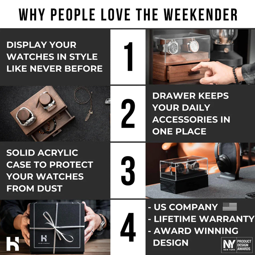 - The solid acrylic cover protects your watches from dust