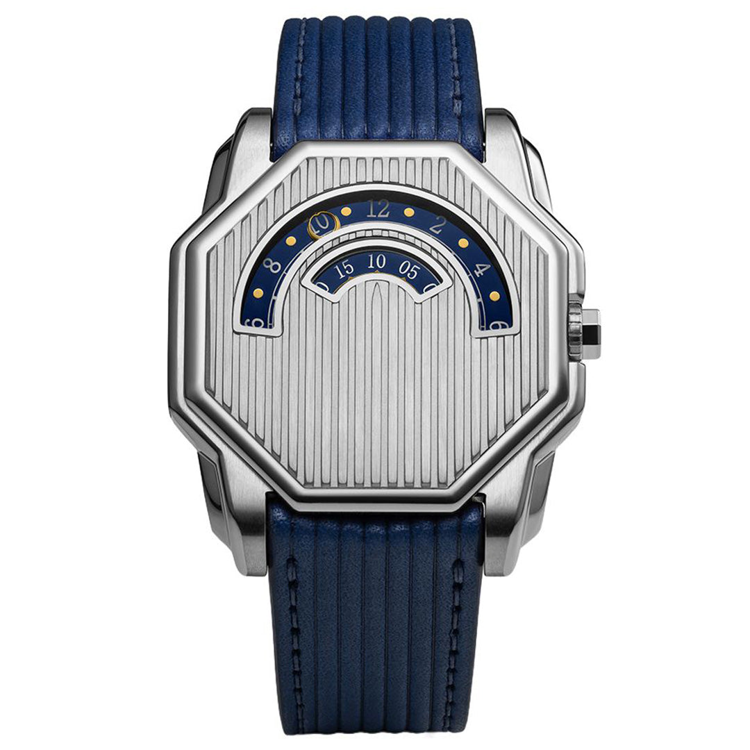 Angles Guichets retains the singular geometry that has defined the collection from the outset: an eight‑faceted case with integrated lugs, structured across three stepped levels, which has quickly become one of the most recognisable signatures of the new independent watchmaking scene.