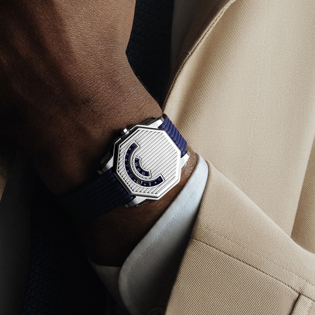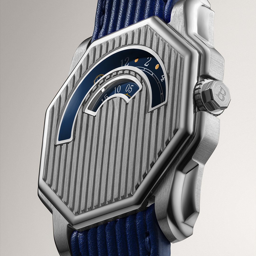 Demanding because the usual visual markers of a watch — those that typically define its identity — vanish behind an almost entirely solid face: no central hands, no conventional dial, no counters, chapter ring or logo – only two arcs revealing the passage of time. This deliberate restraint heightens the designer’s challenge, requiring personality to emerge through proportion, rhythm and detail, while remaining true to the Angles’ underlying design language.