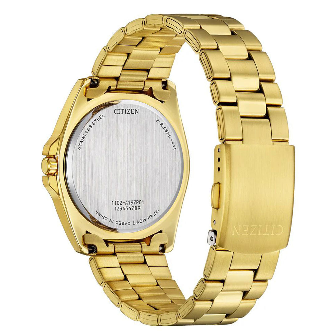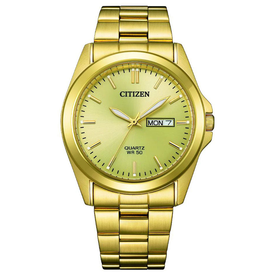 The Citizen BF0583-59P from the Gents Dress Collection is a sleek and versatile timepiece that balances elegance and durability. With a gold-tone stainless steel case and bracelet, this watch exudes refined sophistication, perfect for everyday wear or special occasions.