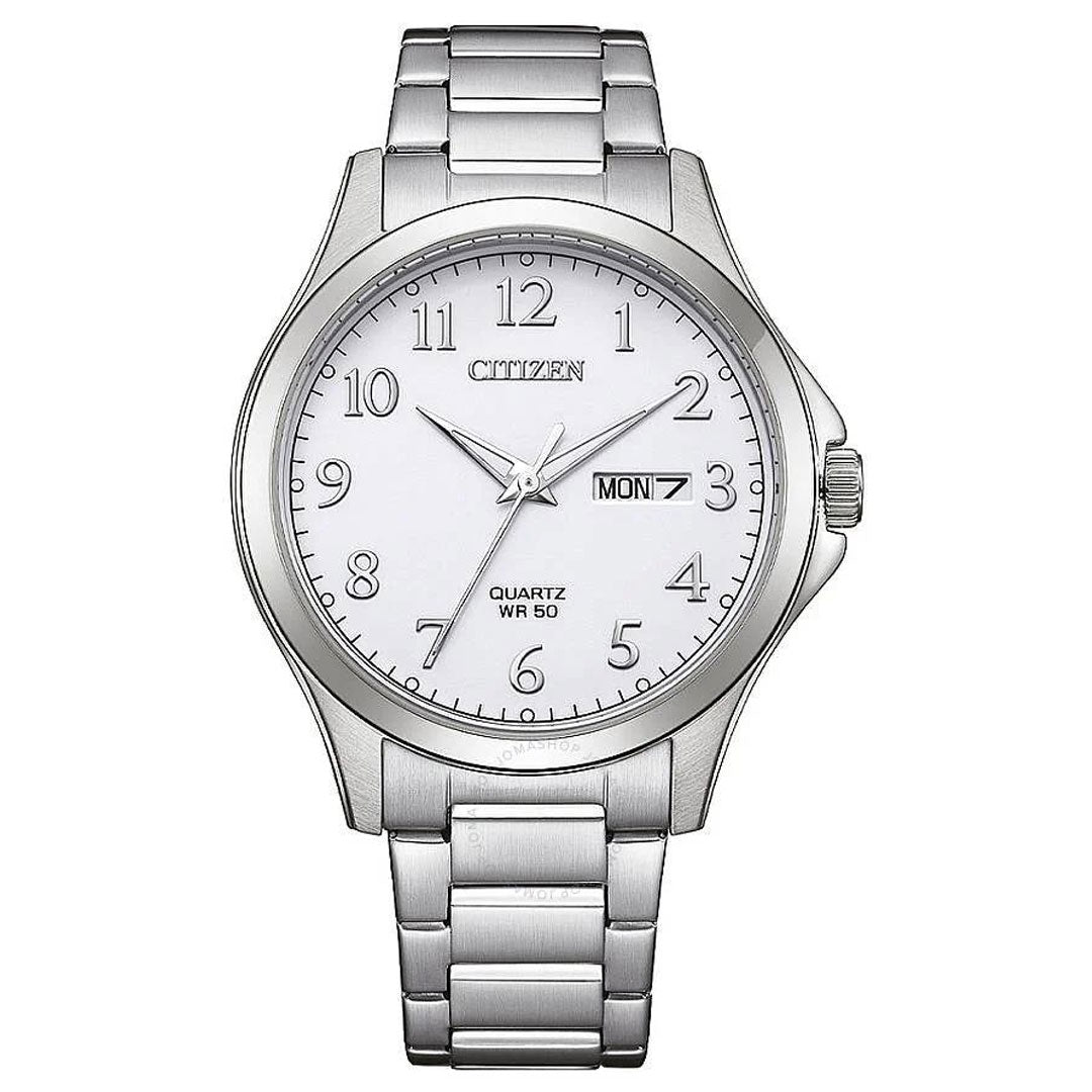 A versatile and sophisticated timepiece, the Citizen BF2021-82A blends timeless design with reliable quartz precision. Featuring a stainless steel case and bracelet, Arabic numeral markers, and a day-date display, this watch is designed for everyday elegance and functionality.