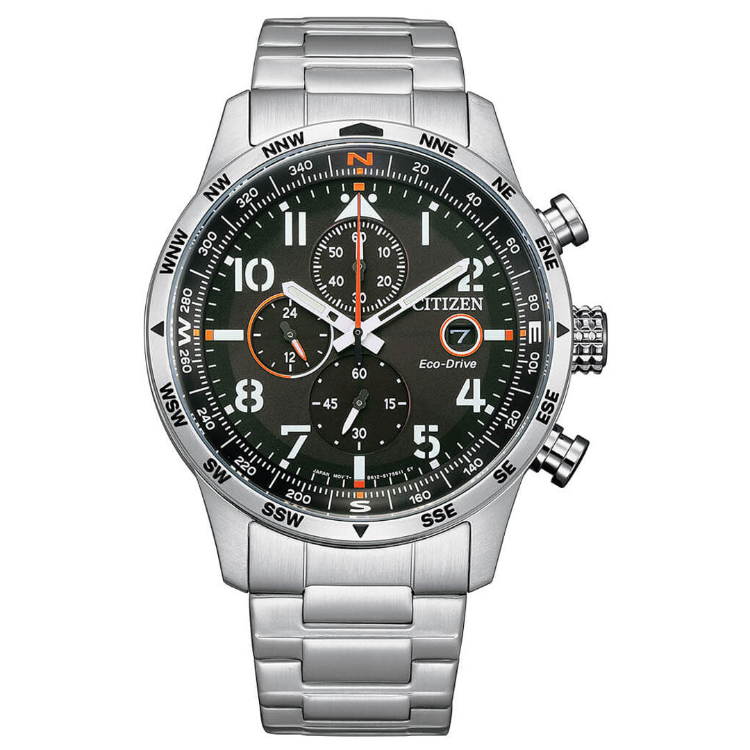 - Eco-Drive (recharged by any light source; no need to change battery)