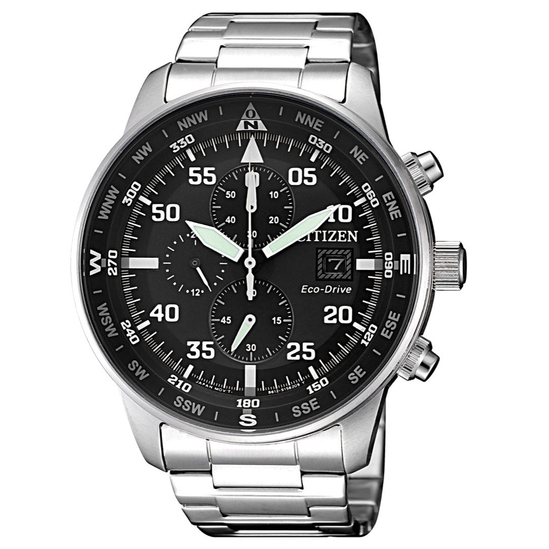 Bringing together precision technology and reliable durability, this watch from the Chronograph Collection represents the ceaseless quest for improvement. Better starts now, with tachymeter and chronograph precise to 1/5 of a second up to 60 minutes for consistent accuracy. Featuring sleek black dial with a stainless steel bracelet, date display and 12/24 hour time, as well as 100 metres water resistance, it is stylishly functional. Powered by Eco-Drive- the revolutionary light powered movement from Citizen, this watch has the ability to continuously recharge in any light source and can run for a minimum of six months even in the dark without any charge. This revolutionary earth friendly technology eliminates the need to change battery frequently and gives you hassle free timekeeping, never disappointing you when you need it the most. The Eco-Drive movement also comes with built-in Insufficient Charge Warning Function and Overcharge Prevention Function.