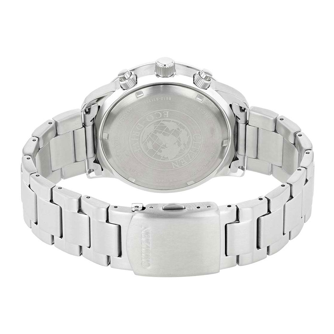 Bringing together precision technology and reliable durability, this watch from the Chronograph Collection represents the ceaseless quest for improvement. Better starts now, with tachymeter and chronograph precise to 1/5 of a second up to 60 minutes for consistent accuracy. Featuring sleek blue dial with a stainless steel bracelet, date display and 12/24 hour time, as well as 100 metres water resistance, it is stylishly functional. Powered by Eco-Drive- the revolutionary light powered movement from Citizen, this watch has the ability to continuously recharge in any light source and can run for a minimum of six months even in the dark without any charge. This revolutionary earth friendly technology eliminates the need to change battery frequently and gives you hassle free timekeeping, never disappointing you when you need it the most. The Eco-Drive movement also comes with built-in Insufficient Charge Warning Function and Overcharge Prevention Function.