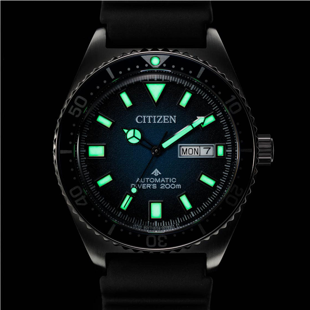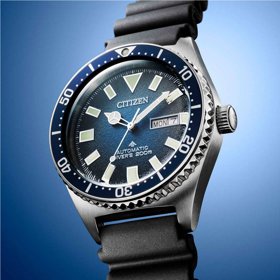 Dive into reliability and precision with the new Citizen Promaster Marine Automatic, a robust timepiece designed for the adventurous man. Built with a 41mm stainless steel case, it offers durability along with a sporty elegance that stands out both under the sea and on land. This watch features an automatic movement, eliminating the need for a battery and offering an impressive 42-hour power reserve. Perfect for divers and water sports enthusiasts, it provides a water resistance of up to 200 meters, ensuring performance in deep waters. The dial is both functional and stylish, set with luminescent hands and markers for clear visibility in low light conditions. The day and date display keeps you on track, while the unidirectional rotating bezel allows for easy monitoring of dive times or other measurements. The watch is fitted with a comfortable and resilient black polyurethane strap with a standard buckle, ensuring a secure fit for any adventure. A mineral dual sphere glass covers the dial, providing high resistance to scratches and impacts. Sporting a sophisticated, gradient blue dial, this Divers Automatic is not just a tool watch but also a statement piece that speaks to the wearer's rugged sophistication. This Citizen Promaster Marine Automatic comes with a 3-year regional warranty plus an additional 1-year international warranty. Whether navigating the depths of the ocean or the urban jungle, this timepiece is your reliable partner for every journey.