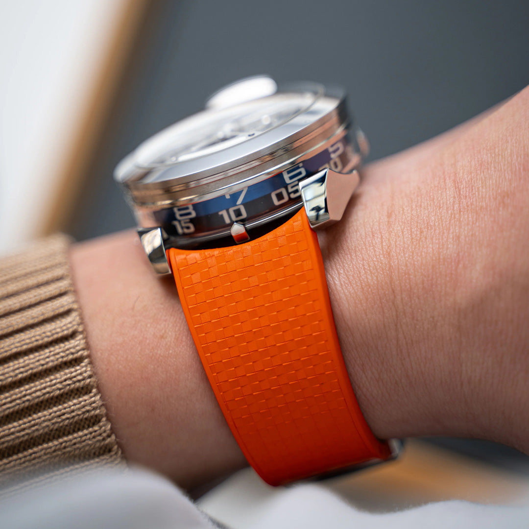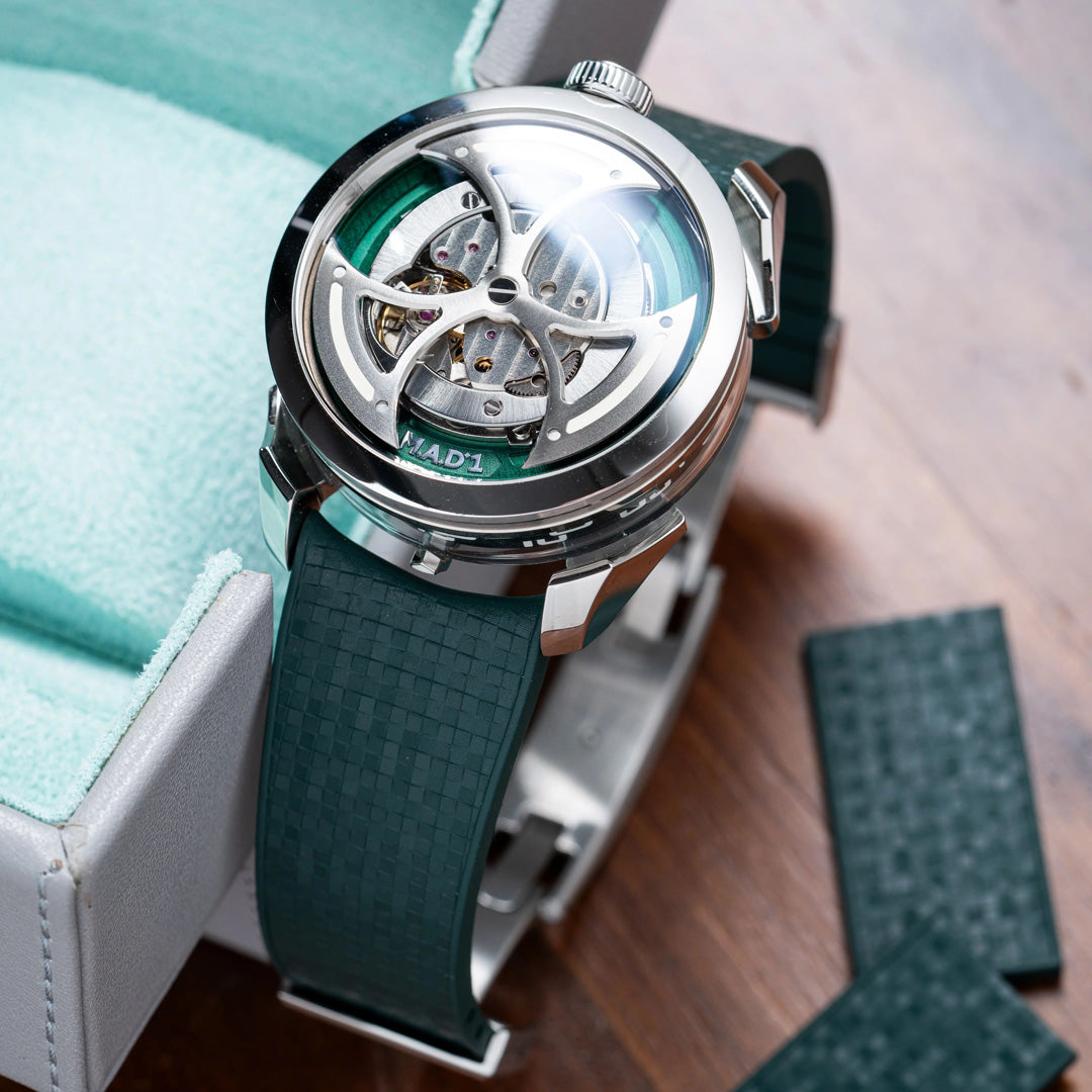 Introducing our CTS Rubber Strap for the MB&F M.A.D. 1, with a mosaic pattern that perfectly complements the M.A.D 1’s spirit of creative expression. With every flick of the wrist to get the rotor spinning, you also get to enjoy the play of light on the strap, making this watch more fun than it already is!