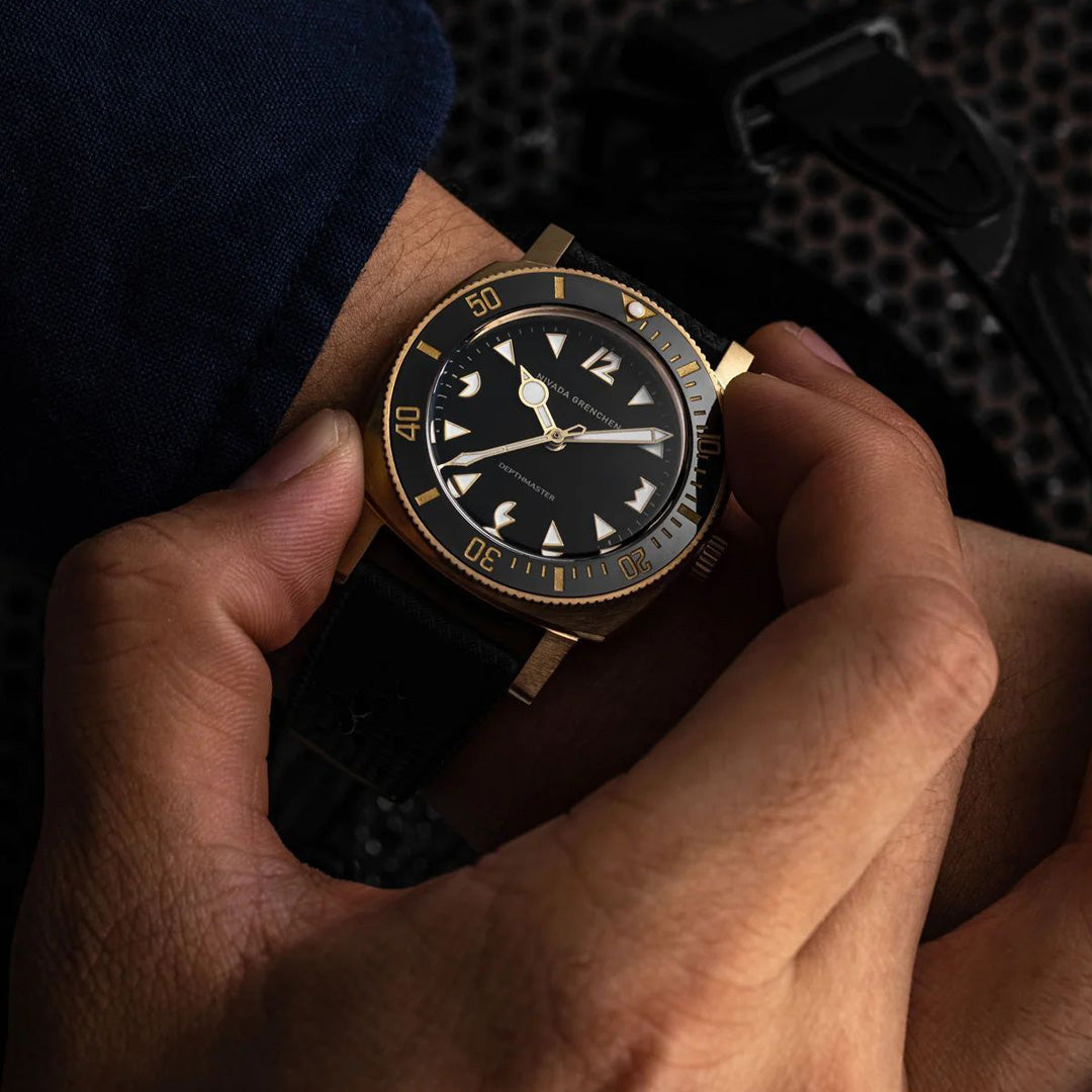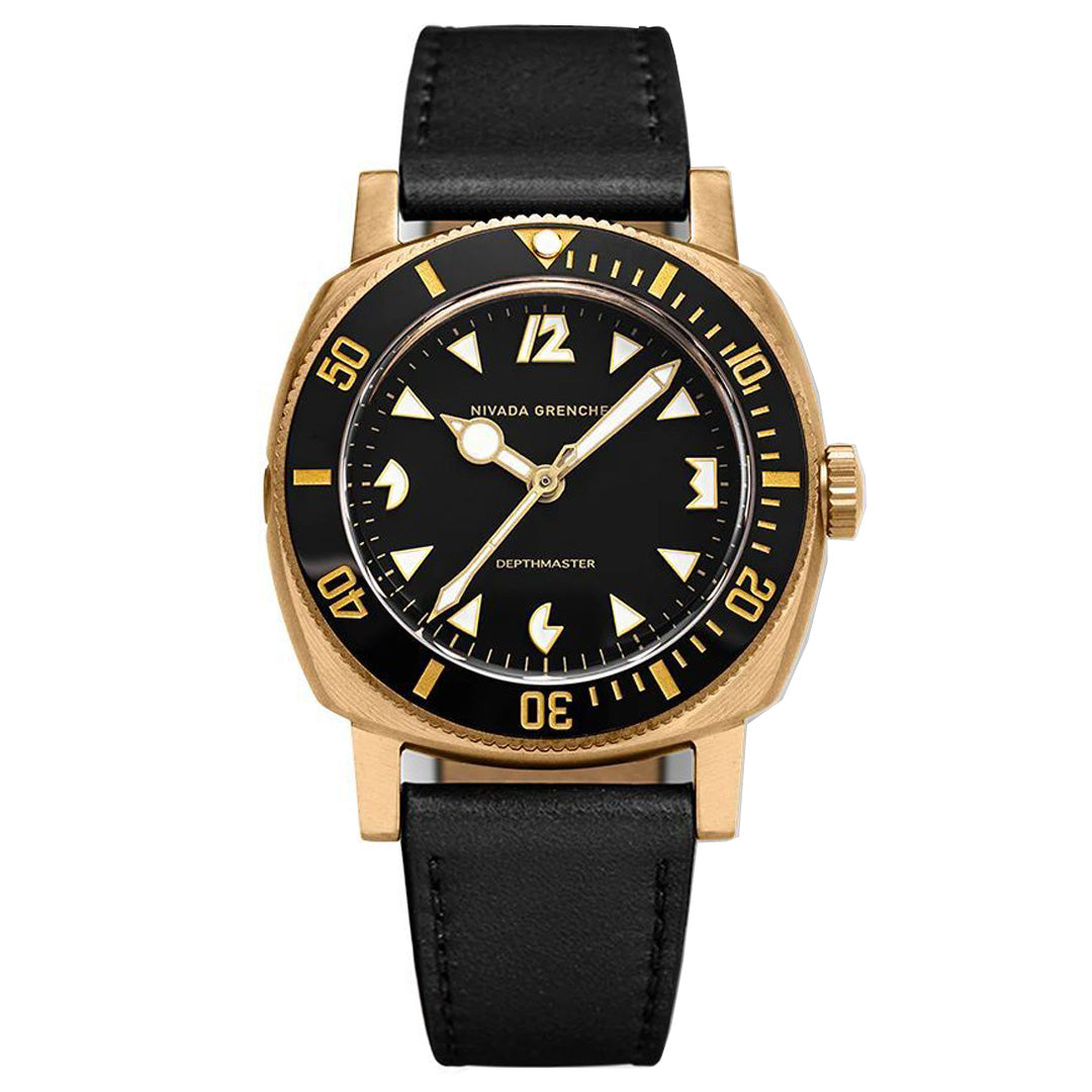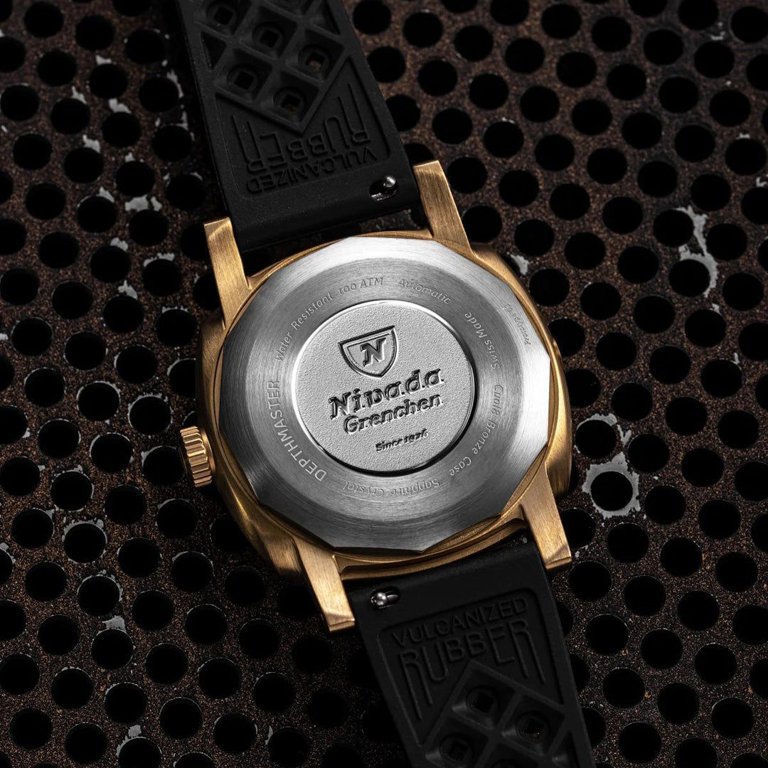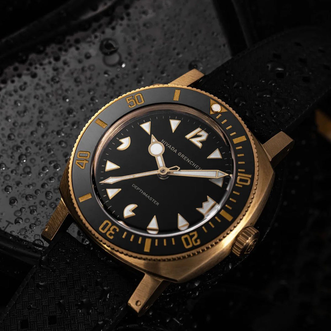 For its latest release, Nivada Grenchen has developed a bronze version of the Depthmaster, still waterproof to 1,000 meters but with a ceramic bezel, not only content with the deep sea but also enjoying urban diving. Versatile, it transitions from sea to land and adorns the wrist elegantly. Playing with a wide choice of straps, it transforms itself; during the day in sport mode ready to dive with a Rubber Tropic strap and in the evening in a dressed-up mode with a leather strap. There are no less than 7 interchangeable straps offered to match your desires.