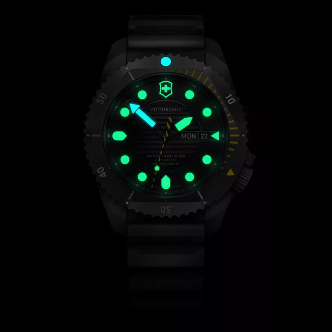 - Swiss made professional diving watch with ISO 6425 certification and water resistance up to 300 m