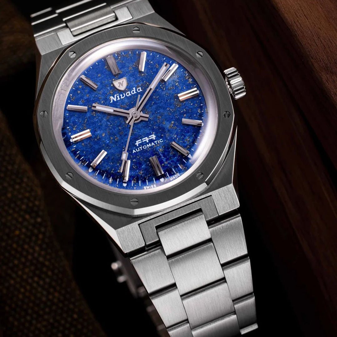 Nivada Grenchen is launching nothing short of a democratic revolution. While ‘sport chic’ steel watches with integrated bracelets are either waiting list-only or breaking price records at auctions, the F77 is a Swiss Made reissue of a 1977 classic that is uncompromising on design and finish quality!