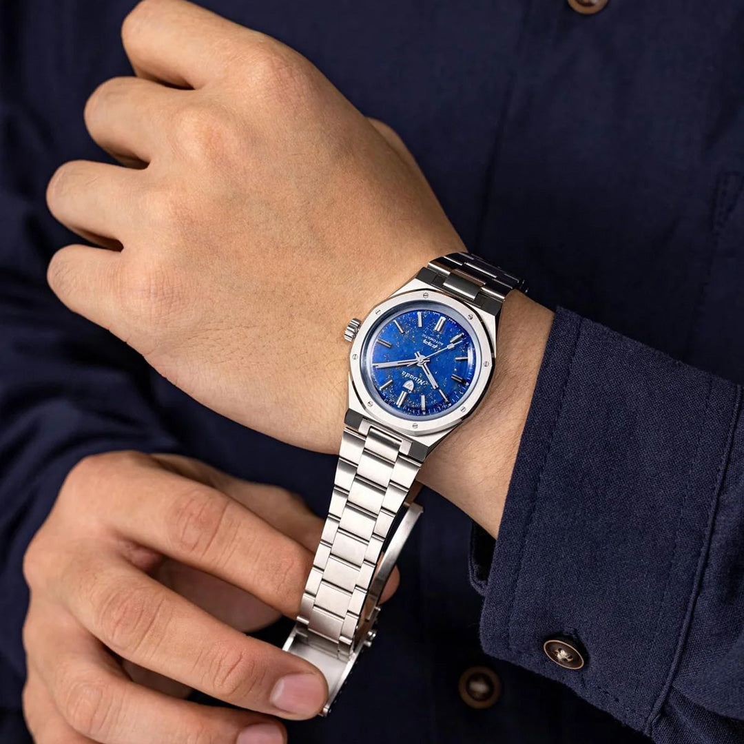 Dial: Lapis Lazuli Dial, Shiny Silver Applied Indexes, Super Lum. White Dots