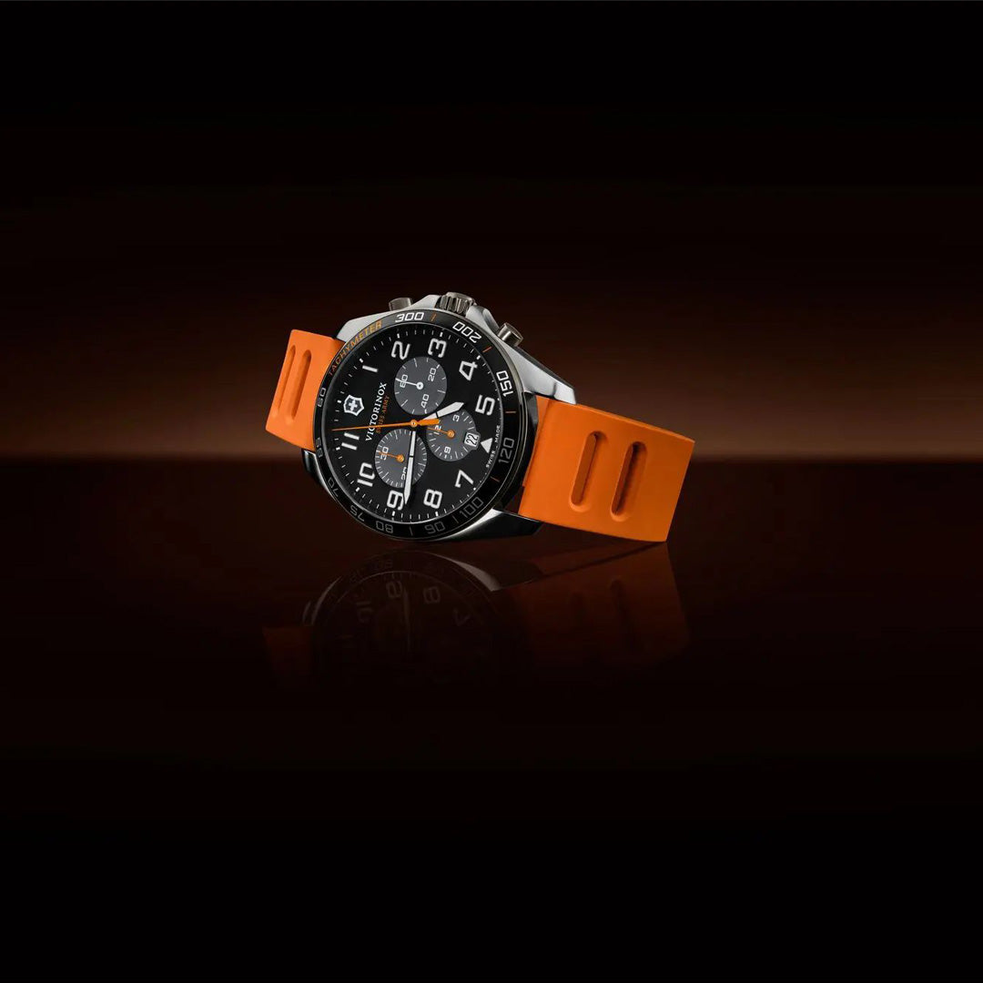 Level the playing field with our FieldForce Sport Chrono. Iconic, classic looks fuse with a modern, sporty feel in this watch for all occasions. With chronograph functions and a tachymeter scale, it's a watch you can count on, whatever life throws at you. Adding to its versatility and endurance, you can choose between a classic steel bracelet or a sturdy rubber strap. High readability means you’ll always have a clear view, whether you’re scaling the sides of a mountain or sealing a business deal. Colorful yet sophisticated, this is a watch with quiet confidence and subtle strength.