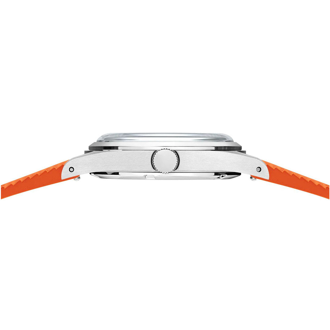 The appliques of the Hermétique Summer Orange are made of Super-Luminova® BGW9, one of the most powerful luminescent materials in terms of intensity and durability, while the hands are coated with it. It ensures optimum legibility in the dark, specifically thanks to these 0.5mm-thick "super indexes".