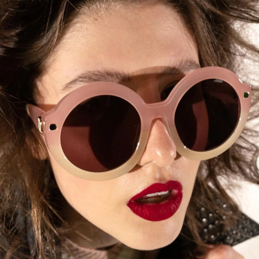 Starting with the colossal 54mm diameter lens, so BIG you will be able to hide behind the gradient brown lenses. A choice of acetate frame in either opaque Lavanda or transparent Amber brown will cement your appearance as an enigmatic movie star, shades of Sofia Loren.