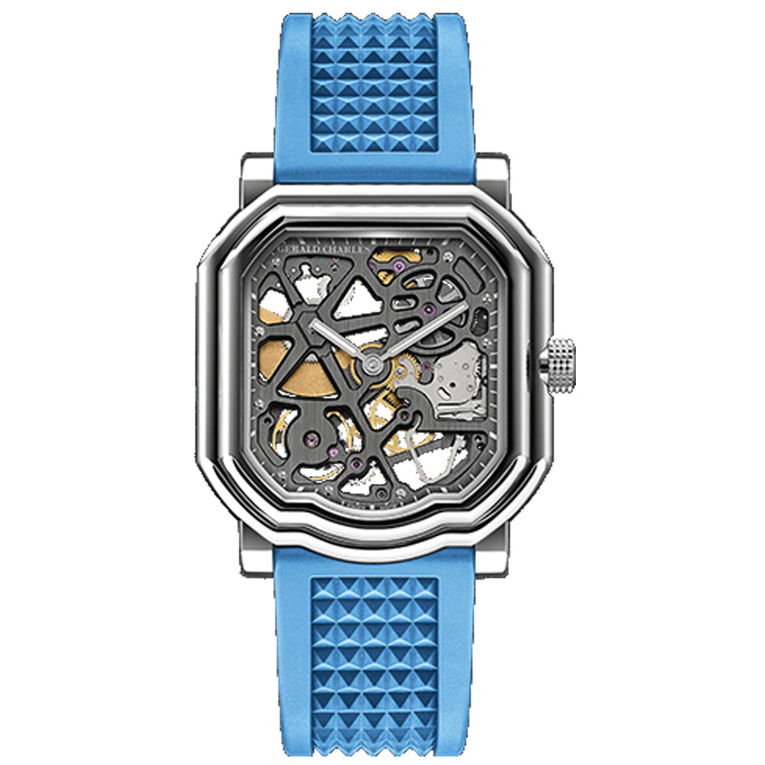 The new Maestro 8.0 Squelette is a watch that combines Mr. Genta’s unmistakable Maestro case shape with an extraordinary and unique open-worked movement that truly celebrates the 'art' of the mechanical watch. This new and unique in-house manufacture ultra-thin automatic movement has been developed with Vaucher Manufacture Fleurier exclusively for Gerald Charles, under the creative direction of the contemporary watch designer Mr. Octavio Garcia. The case of the Maestro GC 8.0 Squelette is based on the Maestro 2.0 Ultra-Thin model, and it has been slimmed down to 8.35mm, to enhance the watch’s ergonomics further and push elegance and performance to their limits. As with every Gerald Charles watch, a screw-down crown ensures the Maestro 8.0 Squelette is water-resistant to an impressive 100 metres