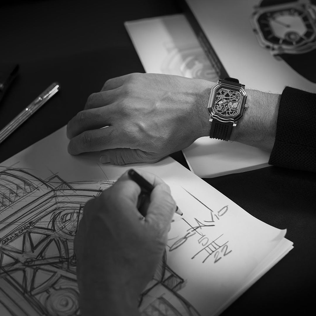 To successfully combine the Maestro's unique case shape with a skeleton movement undoubtedly presented a challenge, both in terms of aesthetics and the practicalities of production - a fact that made it all the more important to call upon Garcia's experience in bringing the project to fruition. The design process involved hundreds of iterations, all of which drawn by hand, that was essential in order to fully explore all the possibilities.
