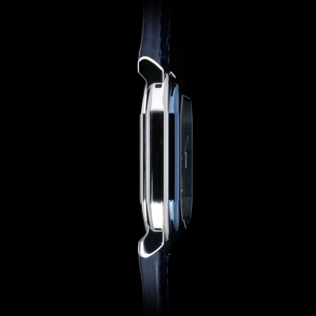 The Maestro 9.0 Roman Tourbillon case is crafted in medical-grade stainless steel and hosts a 60-seconds flying tourbillon cage in titanium in the shape of the Maison’s GC logo. The flying tourbillon is a complication dear to our Maison, as the Maestro case’s signature “smile” at 6 o’clock was originally conceived to host the Tourbillon’s cage.