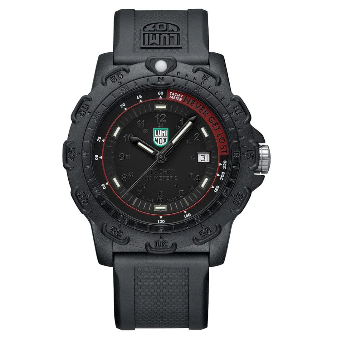 The Never Get Lost watch is a durable timepiece housed in a 45mm CARBONOX™ case. It features a black-out dial, a unidirectional ratcheting bezel and a CARBONOX™ caseback. Water resistant to 100 meters, it comes equipped with a black PU strap adorned with a stainless steel signature buckle. Its proven Luminox Light Technology lighting system guarantees self-powered readability in the night. "Always Visible" for 25 years.