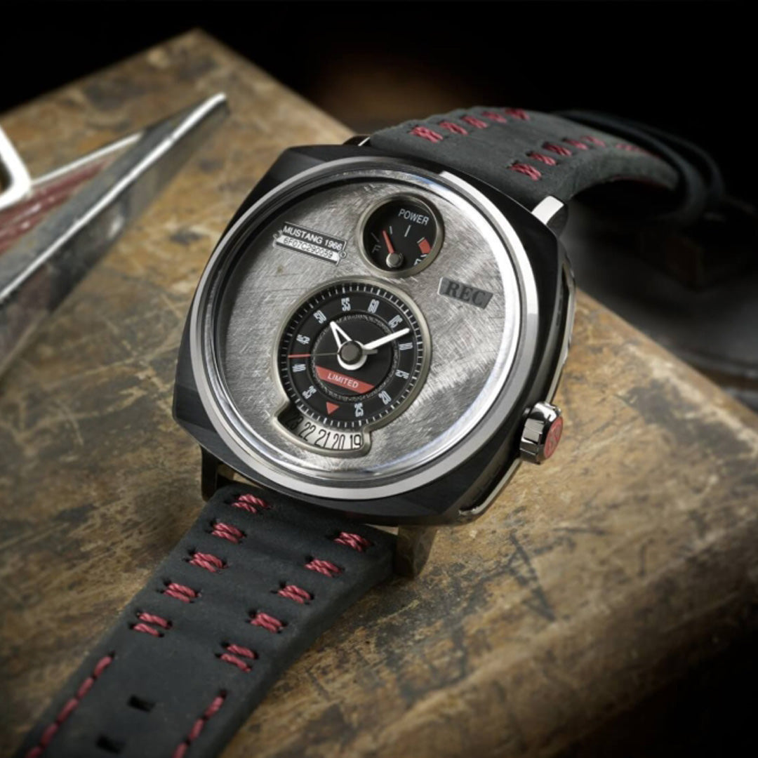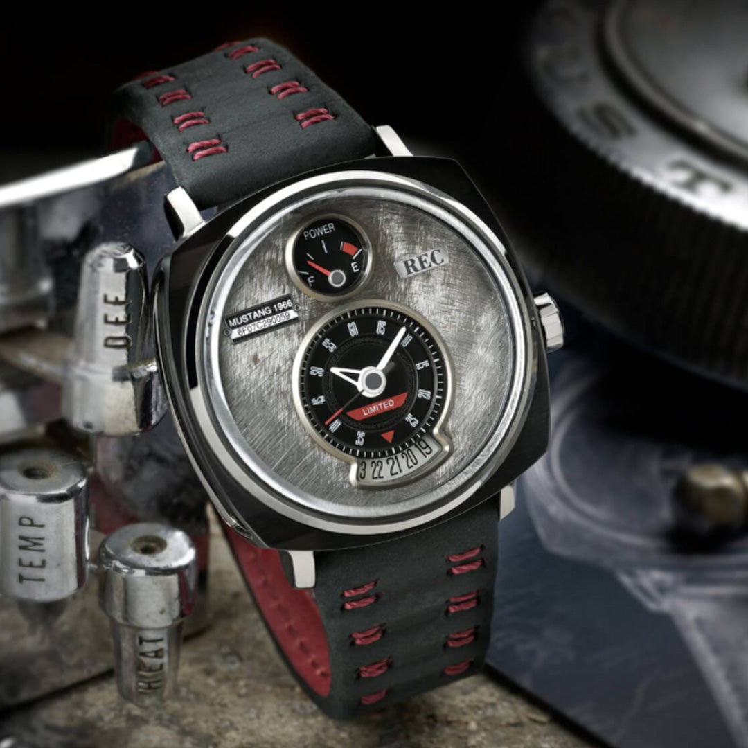 This Limited Edition REC P51-04 Raven Black is in a red meets black combination. It takes off in the classic “Raven Black” paint combination as seen on the Ford Mustang’s in the 60’s. This is why when we recovered a black Ford Mustang from 1966 last year in Sweden we decided to recycle part of the metal for the Limited Edition timepiece.