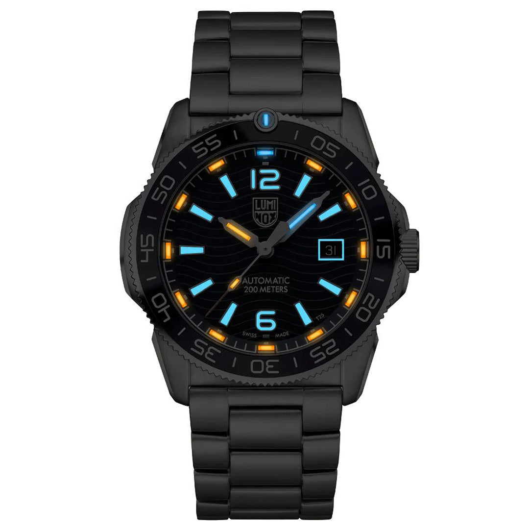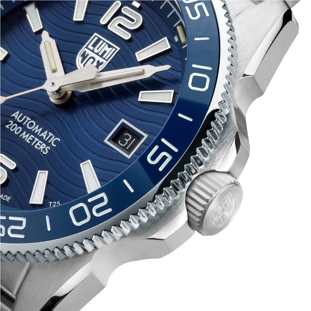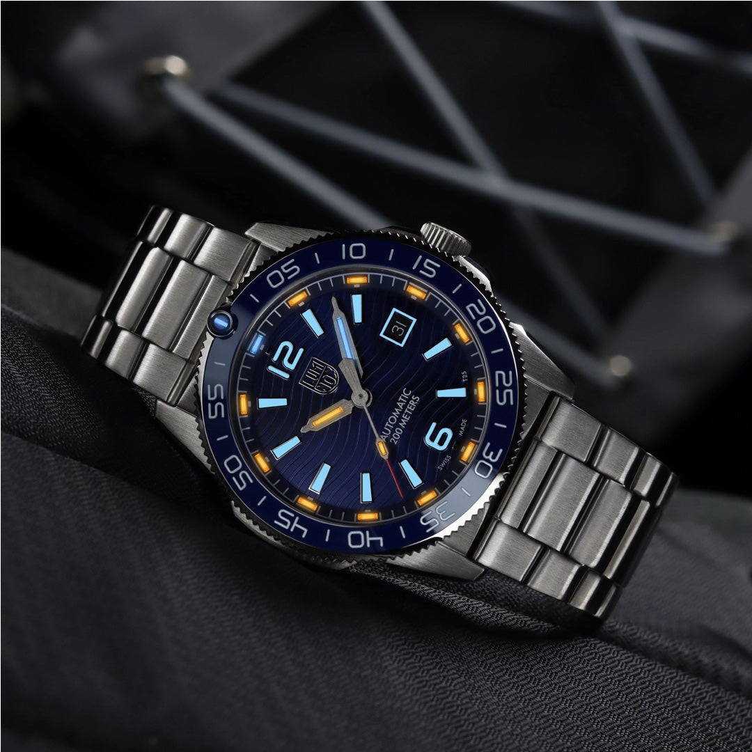 The Pacific Diver series stands out with a sophisticated yet sporty look and intriguing fusion of materials. The XS.3104 watch features a 316L stainless steel bracelet and versatile 42mm stainless-steel case with sapphire crystal and anti-reflective coating. A stainless-steel bezel with a ceramic ring insert completes the design. To evoke the spirit of the ocean, the Pacific Diver Automatic sports a distinct textured blue dial with a wave pattern. The intricate SELLITA automatic movement provides a new level of precision powered by the wearer’s movements. This handsome piece is designed to excel in any environment.