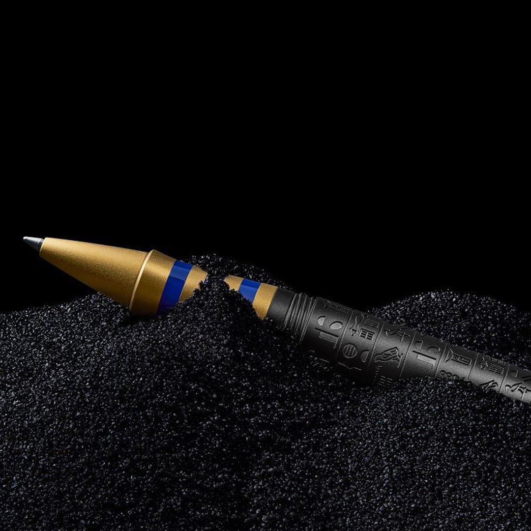 The Pen of the Year 2023 is inspired by ancient Egypt, its 3,000-year-old history, its gods and goddesses, its mythology and its achievements. The decorative elements of the Pen of the Year 2023 are testaments to the origins of the Kingdom of Egypt, the pharaohs, their hieroglyphs and symbols.The black colour of the barrel of the Pen of the Year 2023 represents the annual flooding of the earth by the silt of the Nile, which fertilised the ground. Stylised lotus flowers representing rebirth and the engraved hieroglyphs of twelve ancient Egyptian gods and goddesses adorn the metal barrel, which is designed in a matt finish with a highly resistant diamond-like carbon coating. 24-carat-gold-plated metal rings and high-gloss blue painted rings that call to mind the mask of Tutankhamun adorn the grip of the writing instrument. The 18-carat gold nib promises unique writing pleasure. A 24-carat-gold-plated metal plate in the end cap features the engraved Eye of Horus, a symbol of protection in ancient Egypt. The shape of the cap is reminiscent of the headdress of Nefertiti, one of the most important and powerful rulers of ancient Egypt.A reconstructed lapis lazuli with an engraved scarab symbolising the sun as a lucky charm is inlaid in the end piece of the cap. A lot has been passed down to us from ancient Egypt over thousands of years. But we are also presented with mysteries and fascinated by the era to this day. The fact that we have been able to unlock a few secrets is mainly thanks to the hieroglyphs, the artful writing system that enabled ancient Egypt to evolve into an advanced civilisation.The exclusive ancient Egypt edition of the POTY 2023 is limited to 375 fountain pens and 125 rollerball pens.