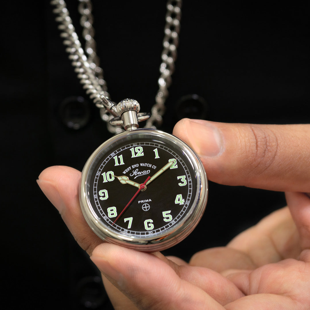 - Historical Black Dial with luminescent figures & Skeleton Pear shaped hands
