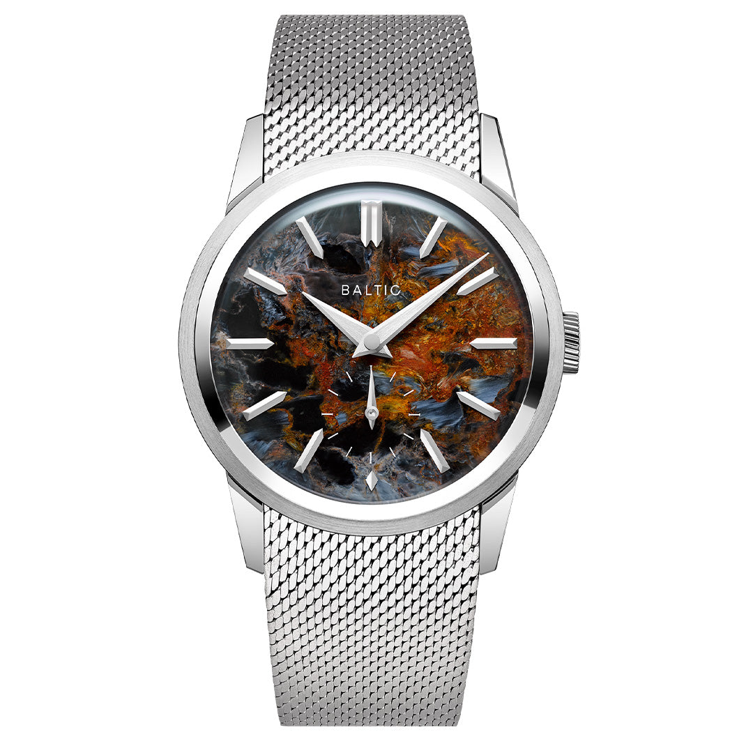 Dial: Pietersite stone dial, Brushed dauphine hands with polished chamfers. Polished and applied indexes