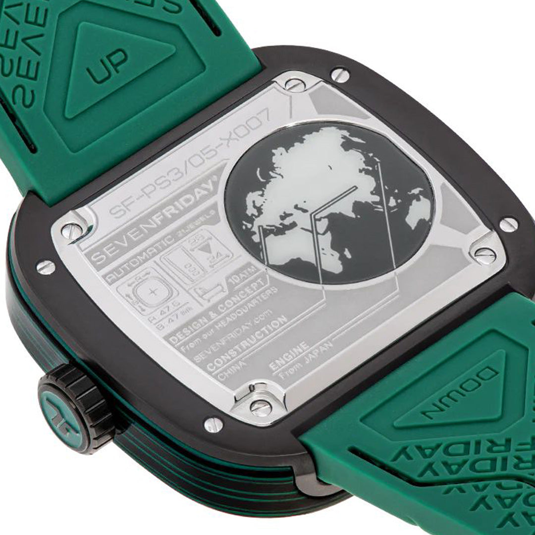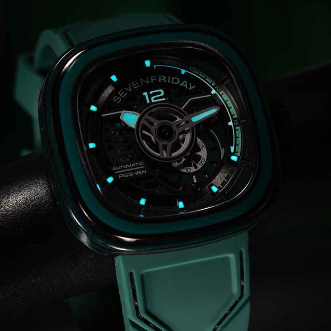 The new PS-Colored Carbon offers a vibrant choice of three striking colors: PS3/03 in orange, PS3/04 in blue, and PS3/05 in green! Nestled in the more technical PS range, the watches’ animation ring is made of a special combination of carbon fibre and coloured resin, the latter matching the dial, strap colour and the Berlac filled bezel.