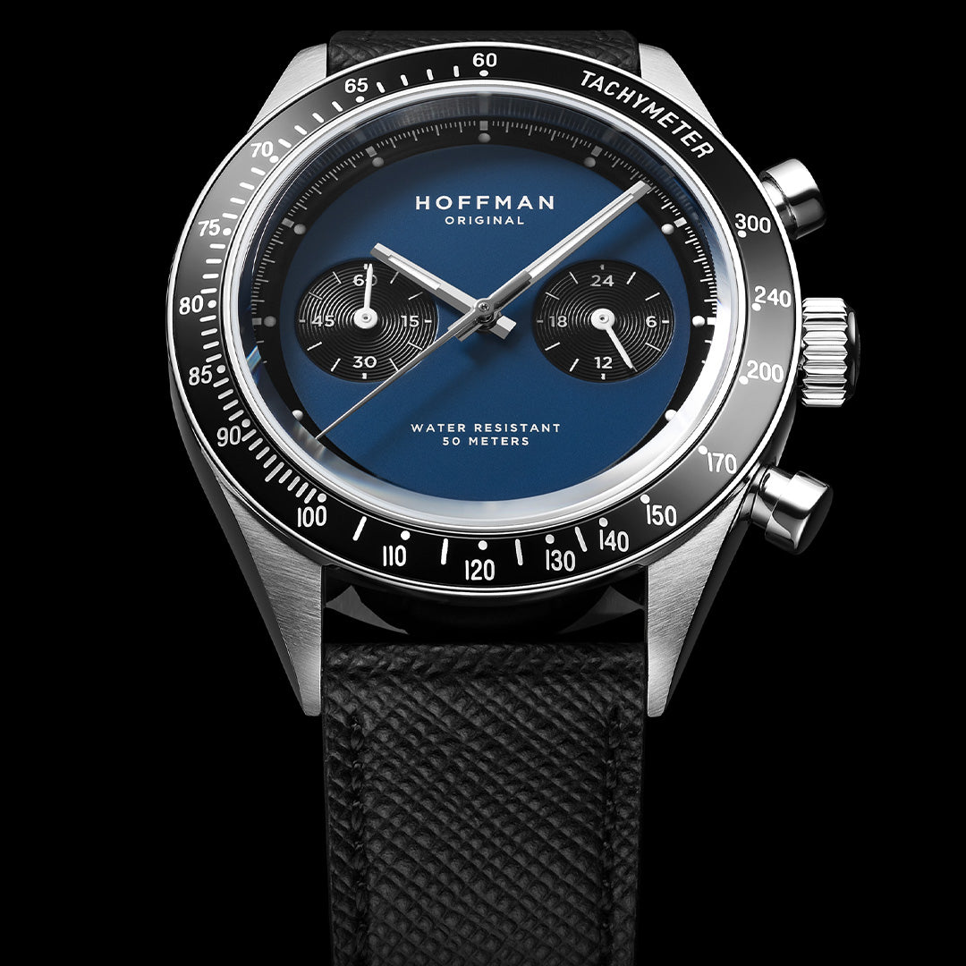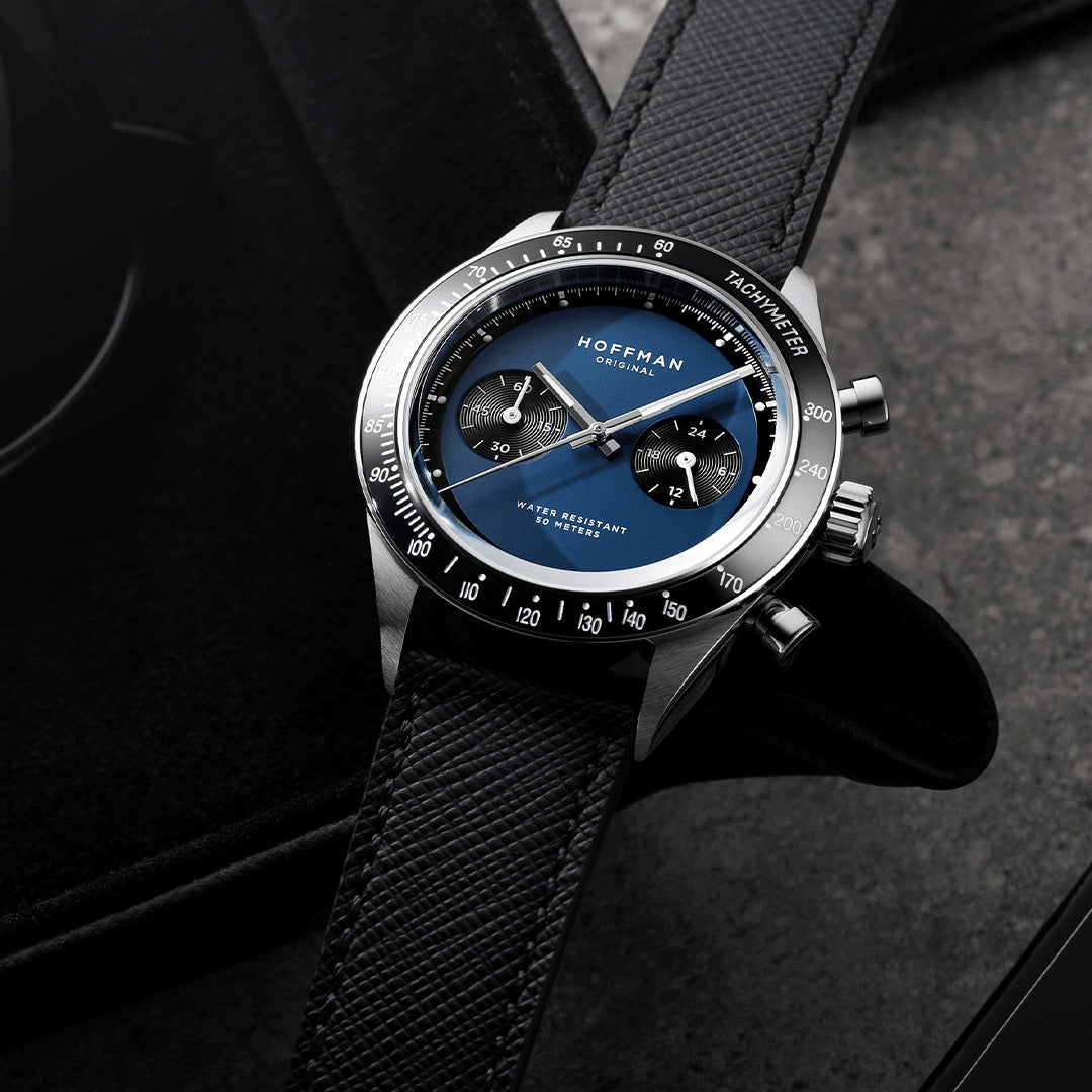 The RACING 40 has a matte dual-layered dial with embossed circular pattern accentuating the sub-registers displaying 60-minute stopwatch and 24-hour time.