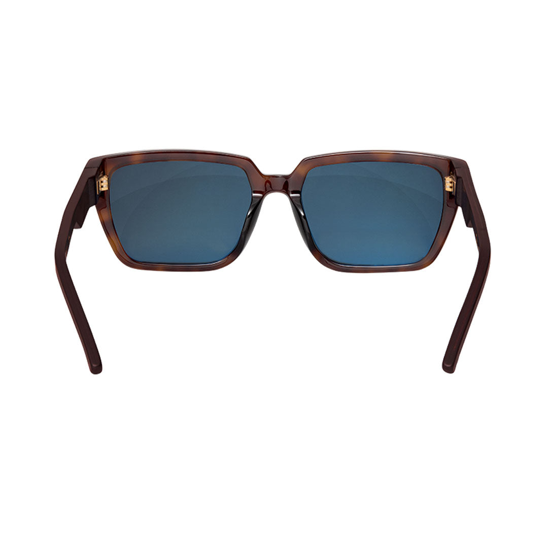 Tortoise polished acetate frame. Semi matte stainless-steel inner rim with 5N gold PVD treatment. Inserted stainless steel polished square-cushion shape signature with 5N gold PVD treatment.