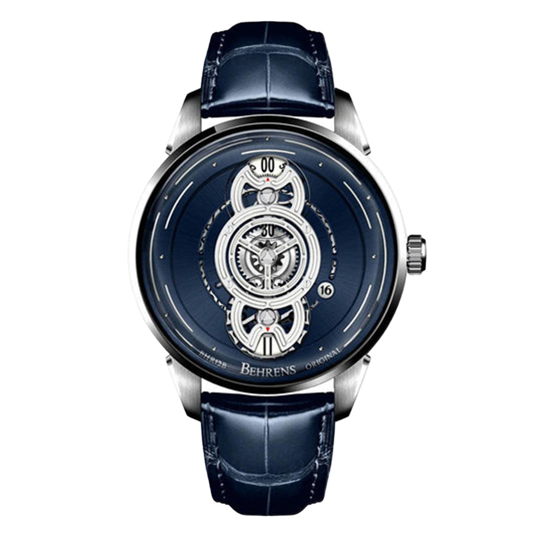 B012B – “SPACE TRAVELLER” series – BLUE Fume Dial edition is a mechanical wristwatch we have developed base on the inspiration from the revolution of planets. From which a Miyota Cal.9015 automatic movement (one of the most stable and reliable mechanical movement in the market) has been used as a base for power source and then we installed a mechanical module which we have designed, developed, and constructed completely in-house based on a satellite system (for satellite time display function).