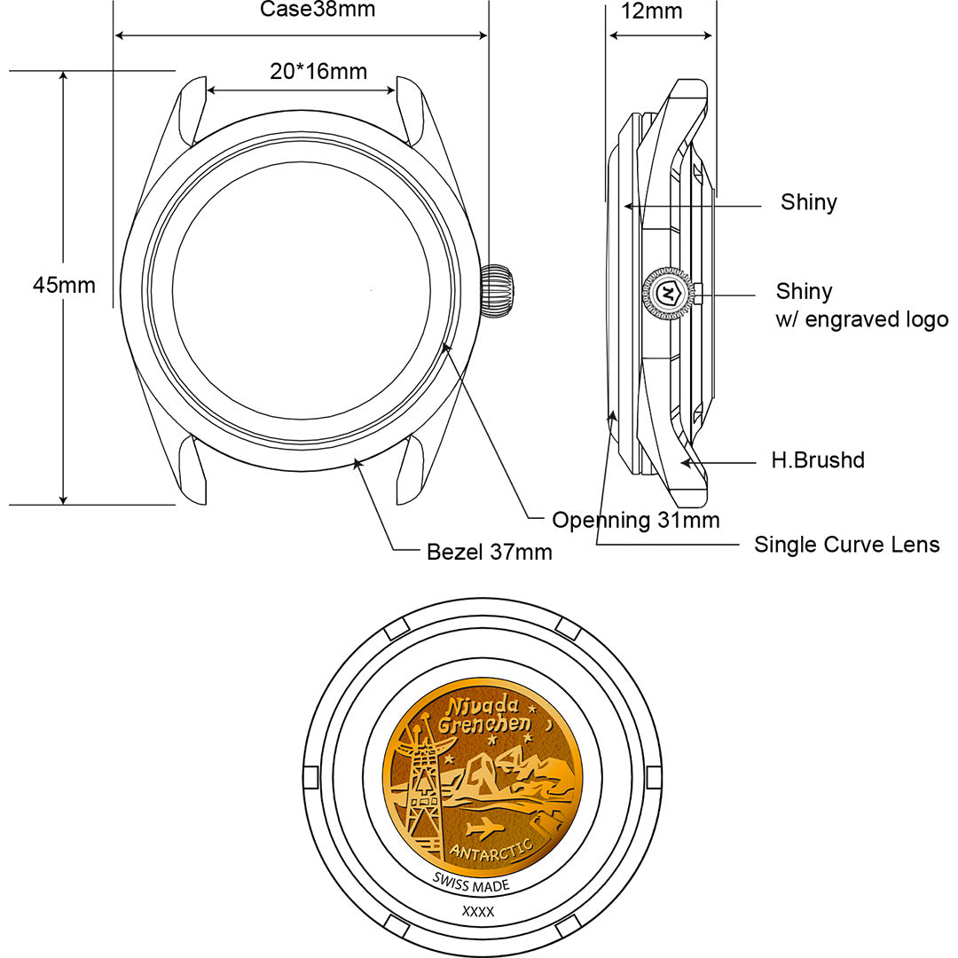 Movement Functions:Analog Display Hours, Minutes, and Central sweep second, Self-winding mechanism
