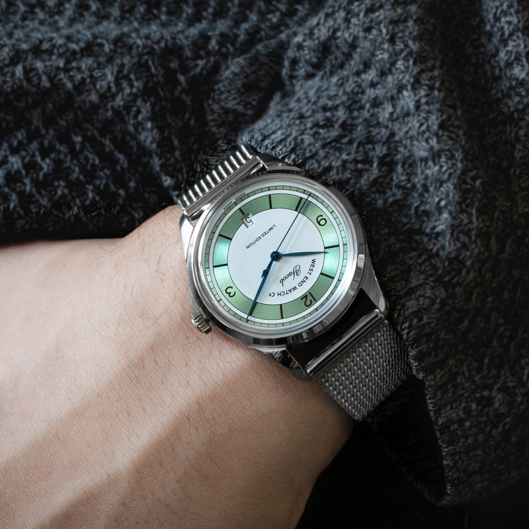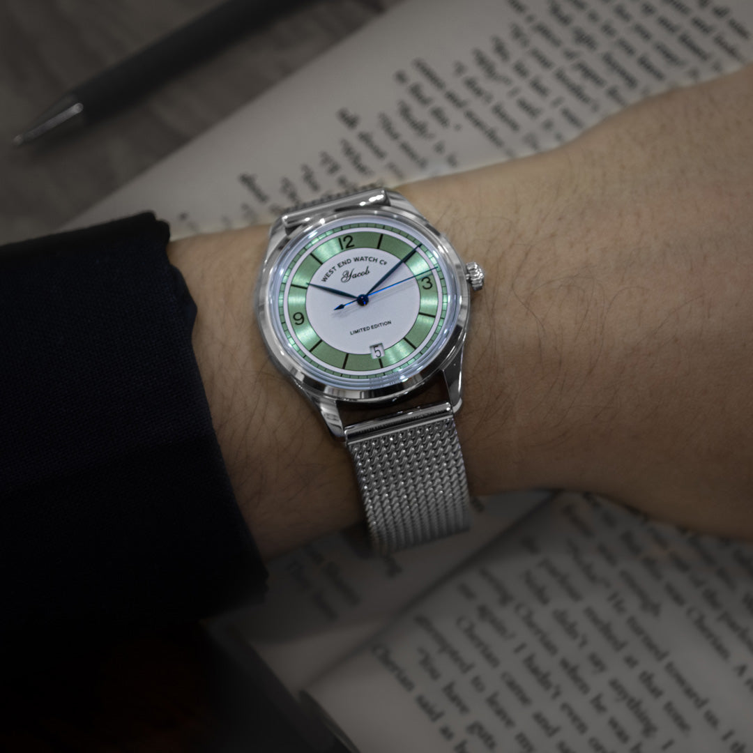 Dial: Silver Sector Dial with Galvanized Green Ring