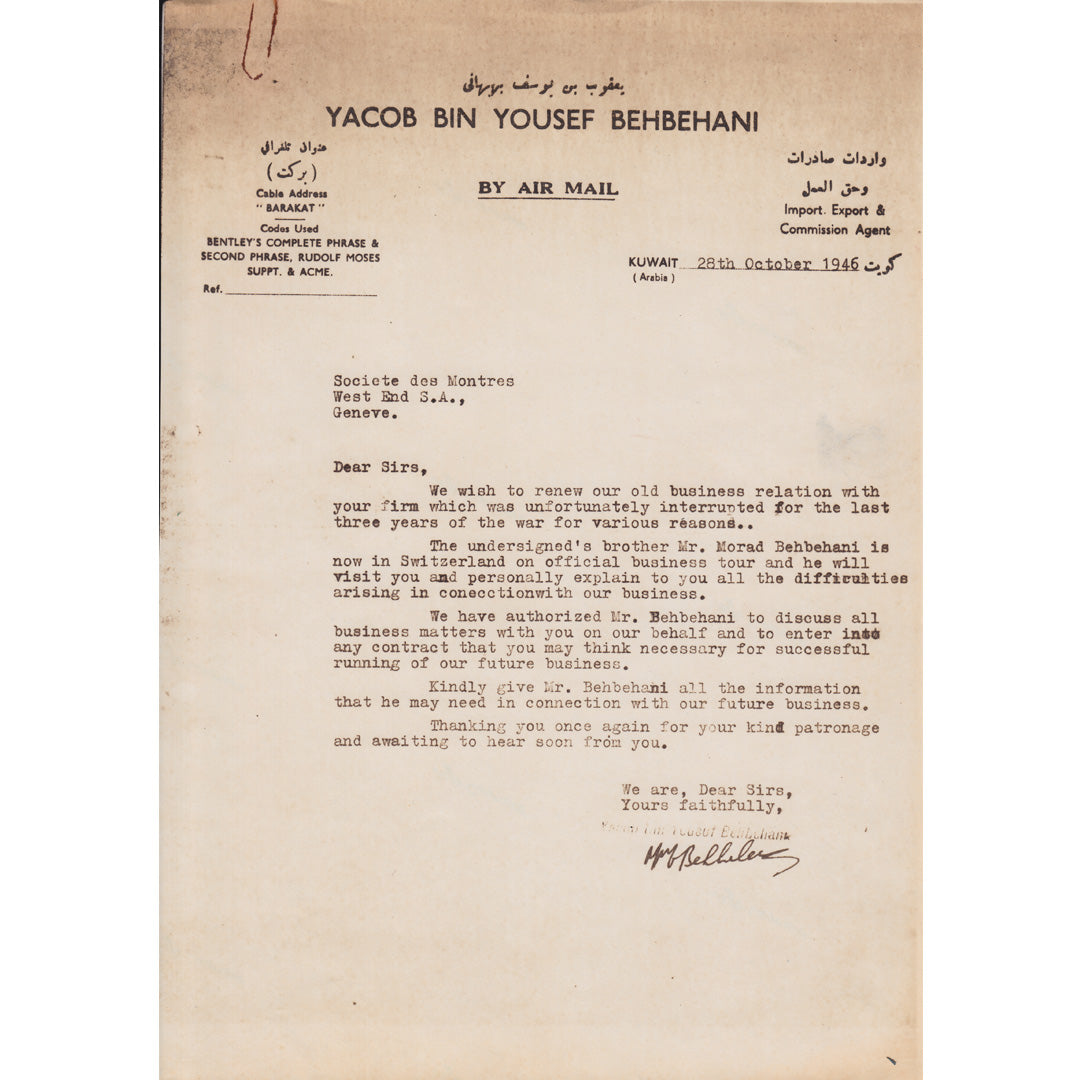 An Exceptional History - Mr. Yacob Yousef Behbehani & West End Watch Co.