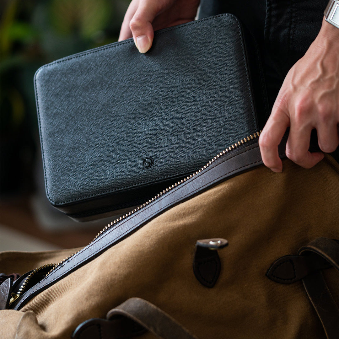 We set out to create the ideal watch box that wouldn't feel out of place at a cafe / bar, in your drawer, or in a safe. We wanted a watch box that you would feel proud to display, and one that would give you 100% confidence about keeping your watches securely stored within. We had the following requirements in designing our Zip Box:
